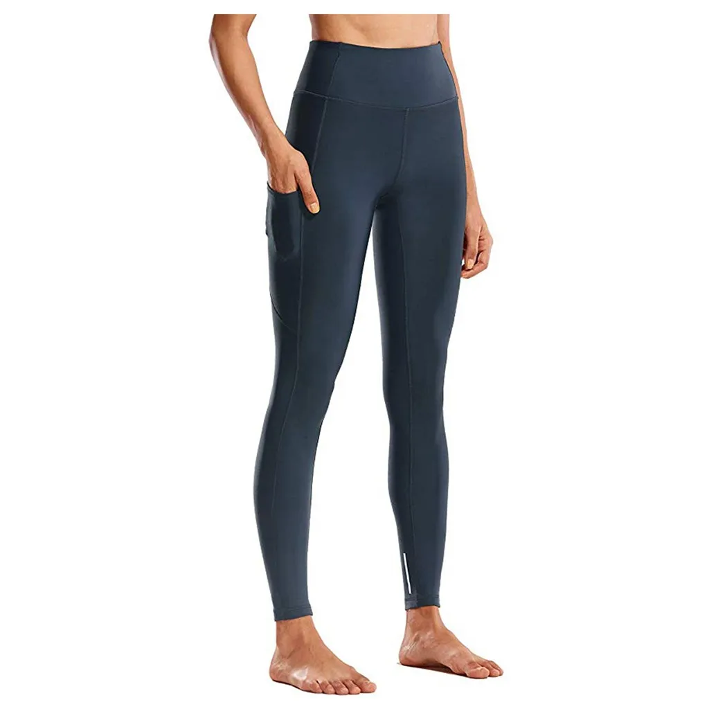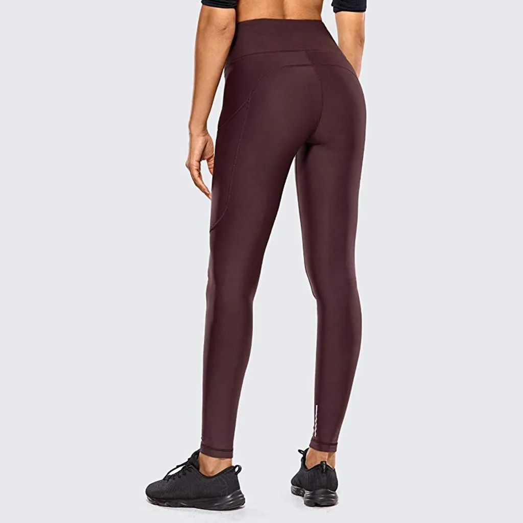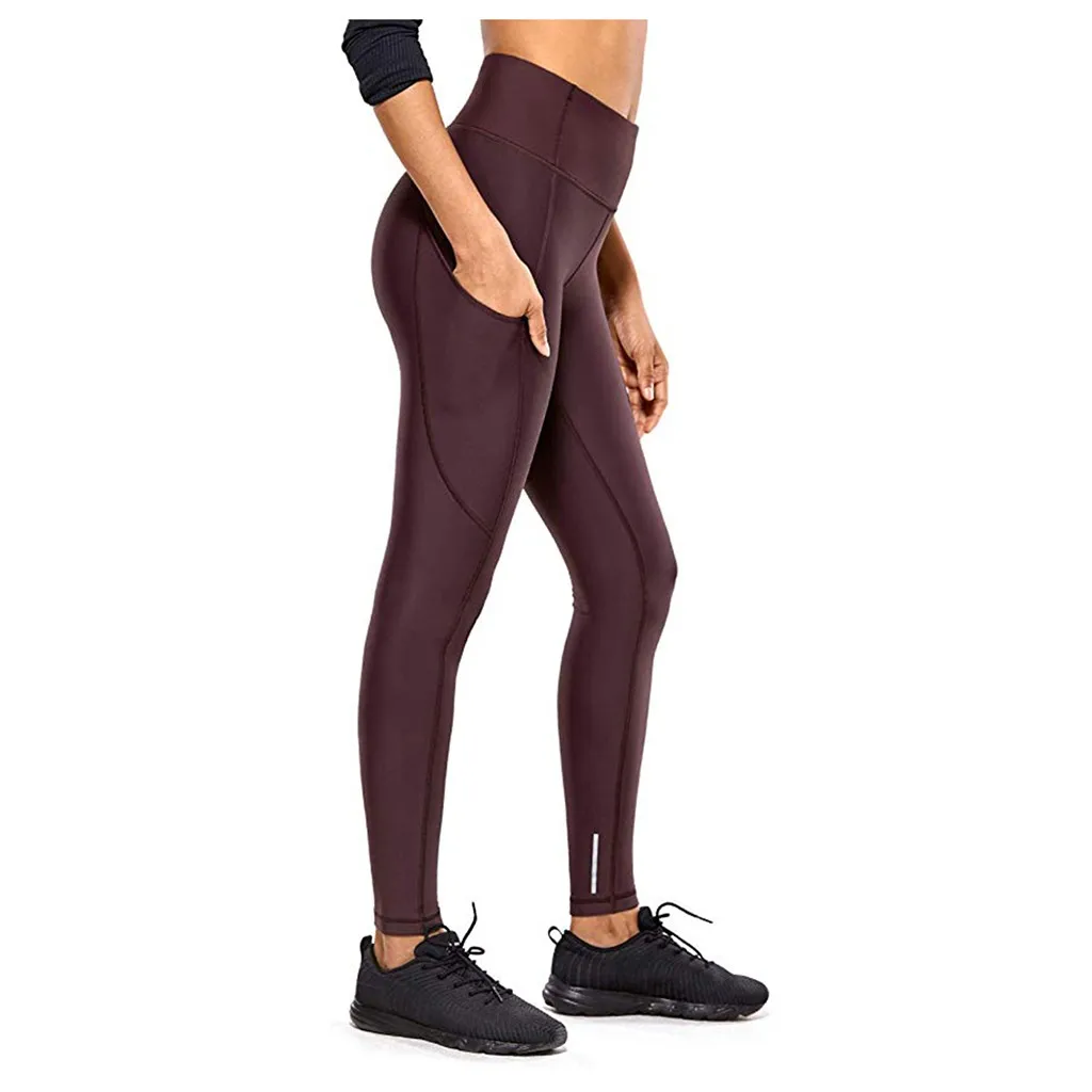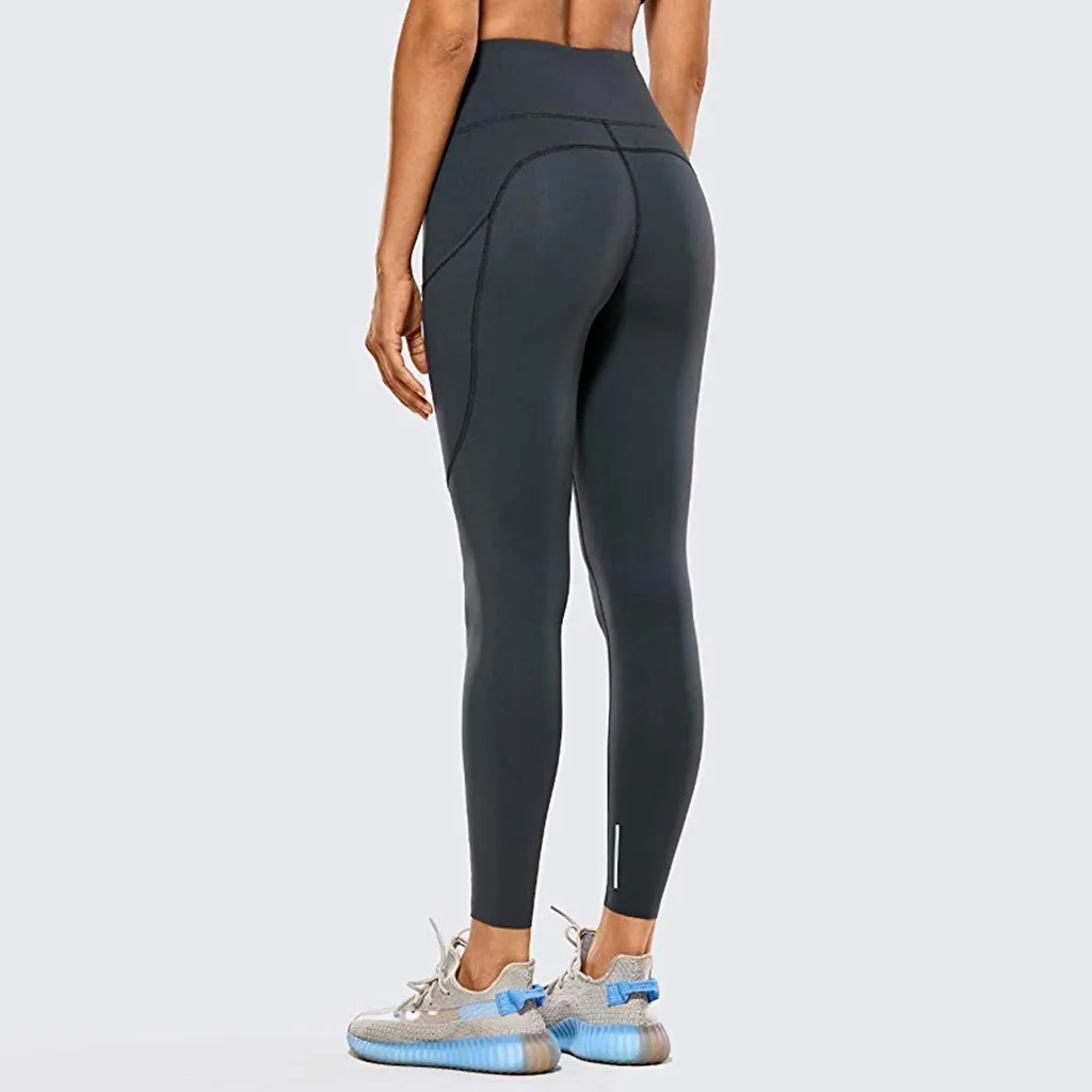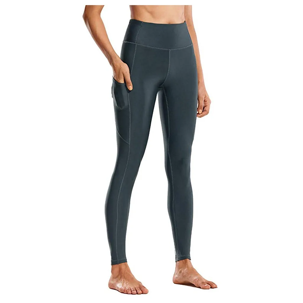 Женские обтягивающие штаны для фитнеса и йоги с высокой талией, штаны для йоги телесного цвета со скрытыми карманами