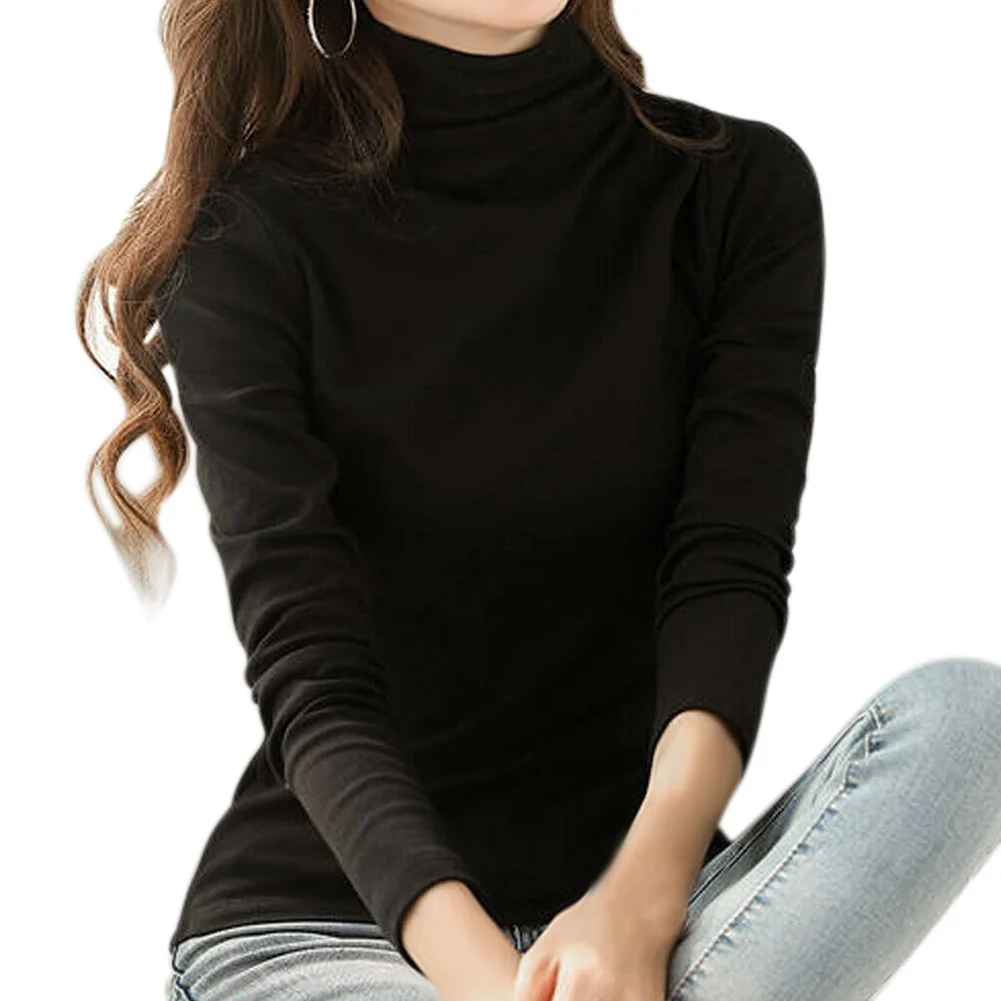 Женская водолазка, базовые Топы с длинным рукавом, стрейч-футболка, тонкий теплый джемпер