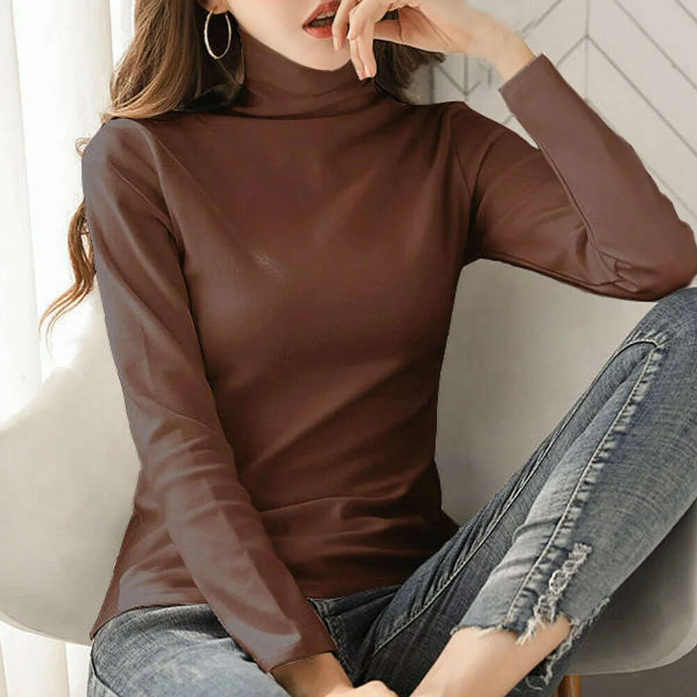 Тип одежды: Женская водолазка; Базовые Топы с длинными рукавами; Стрейч-футболка; Тонкий теплый джемпер