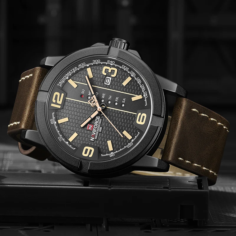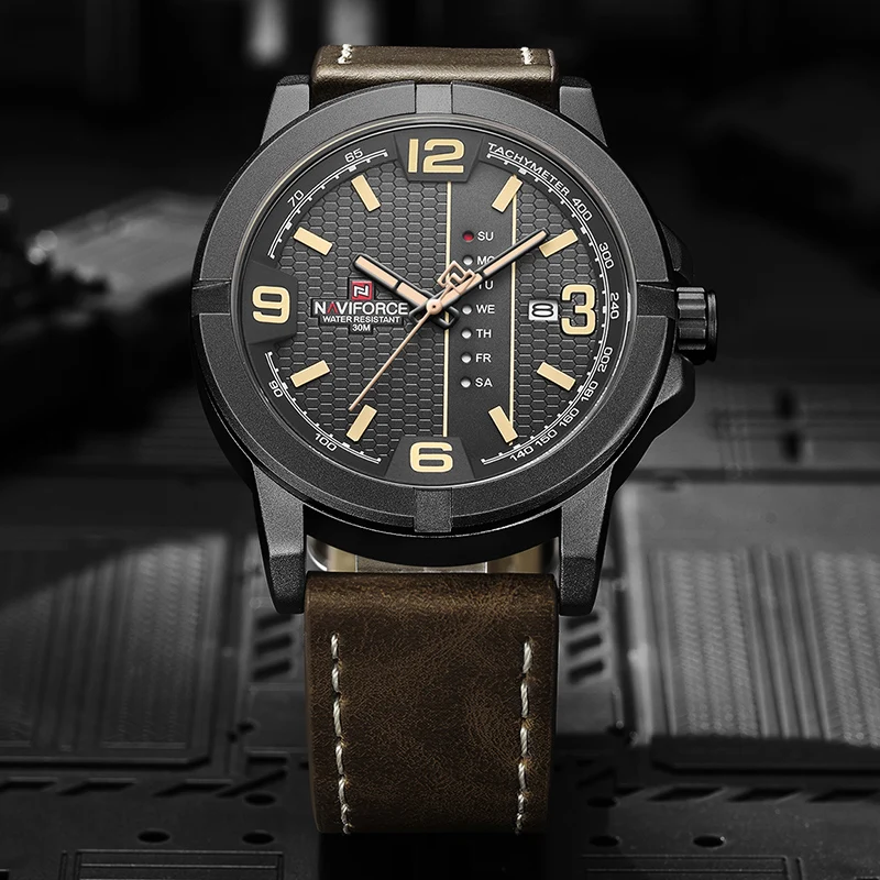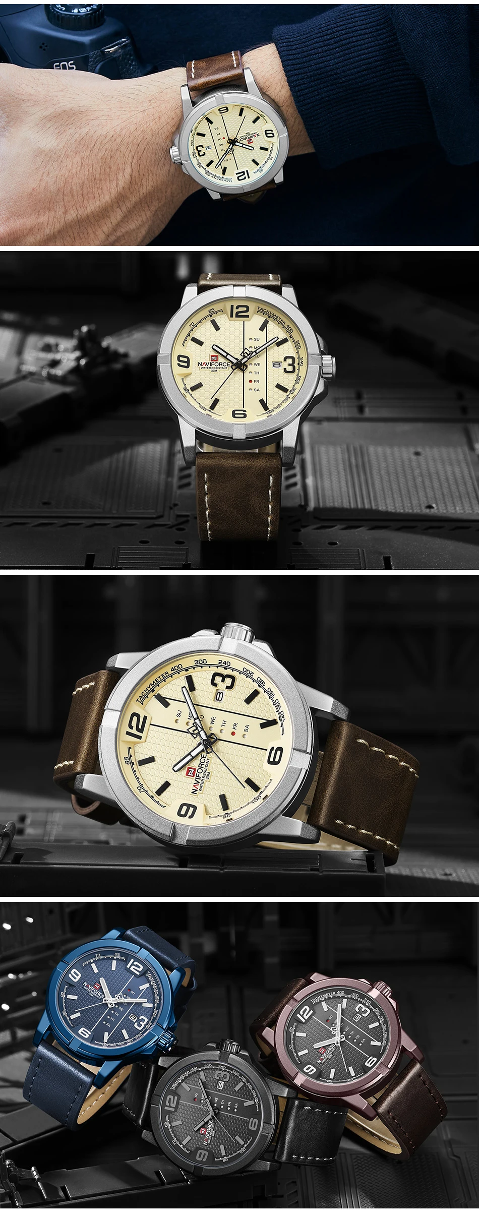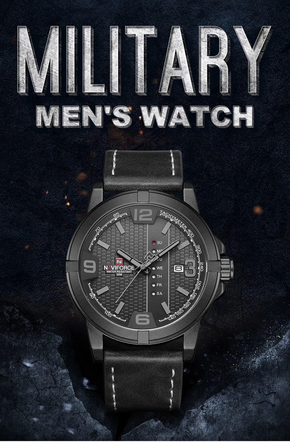 Часы наручные NAVIFORCE Мужские кварцевые в стиле милитари, роскошные Брендовые спортивные водонепроницаемые, с кожаным ремешком, с датой