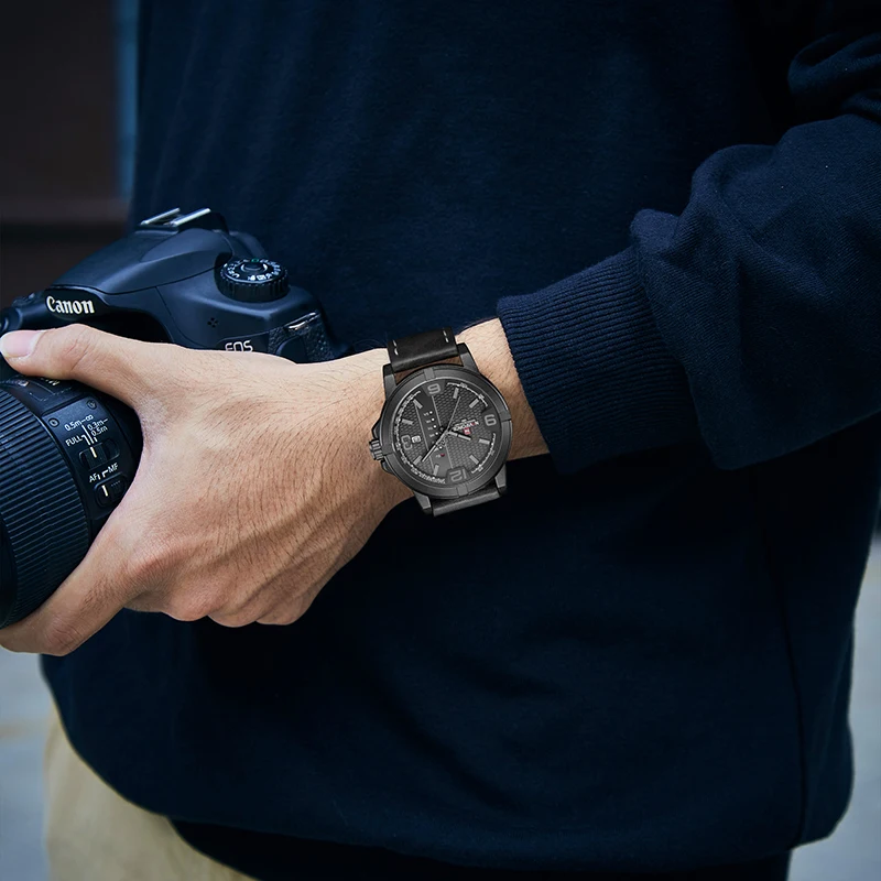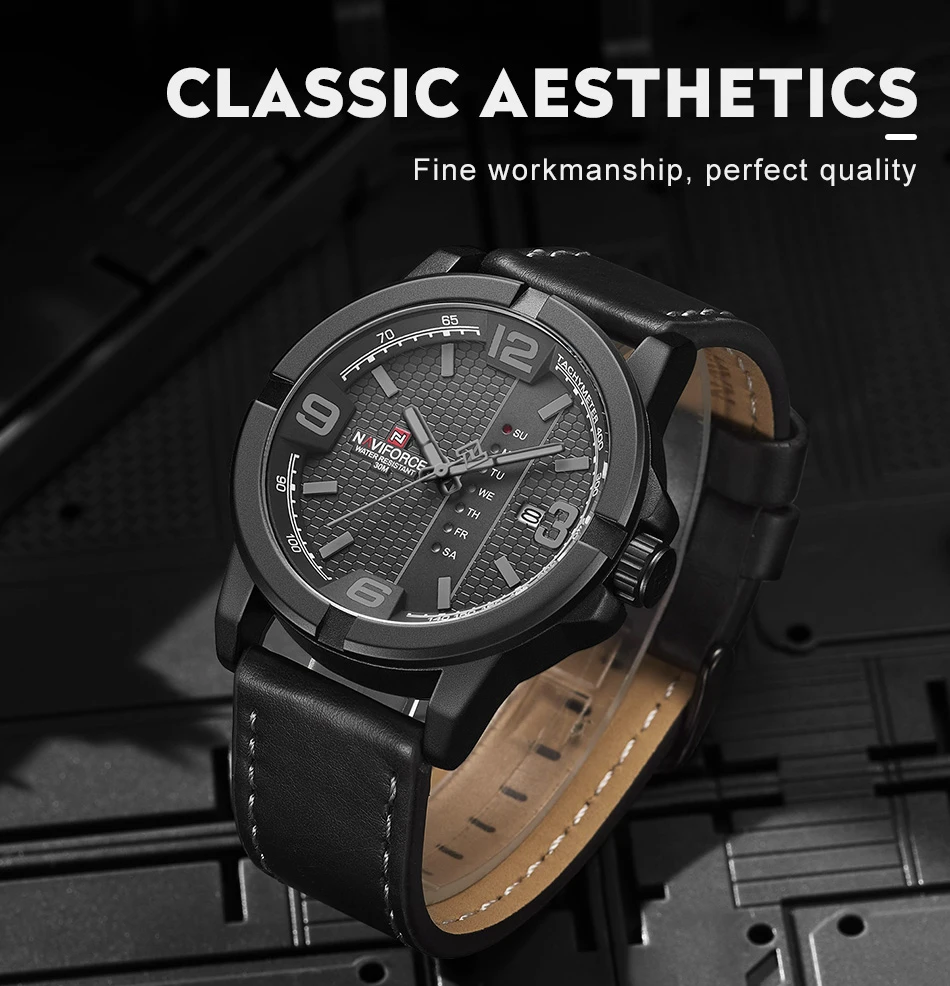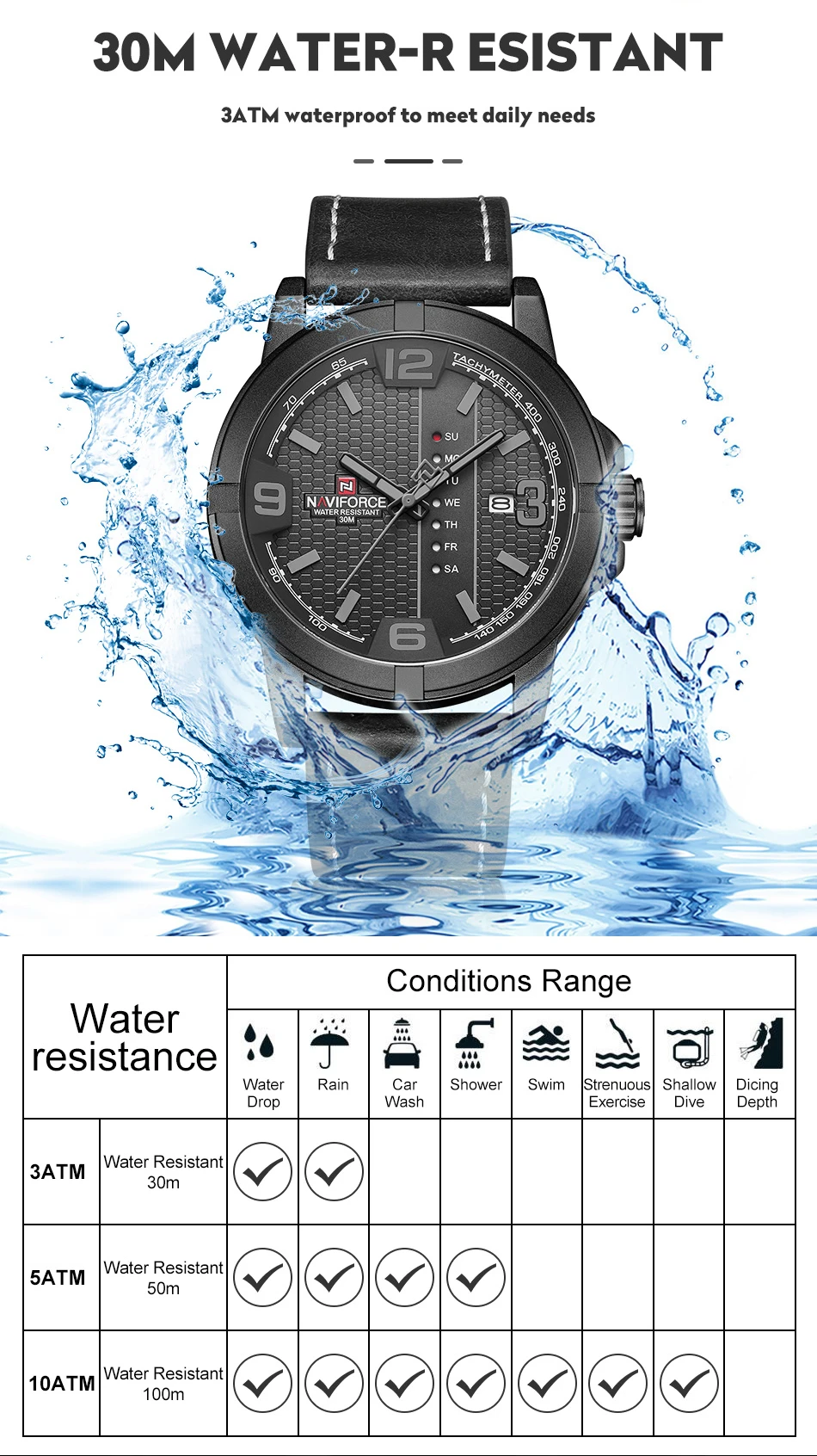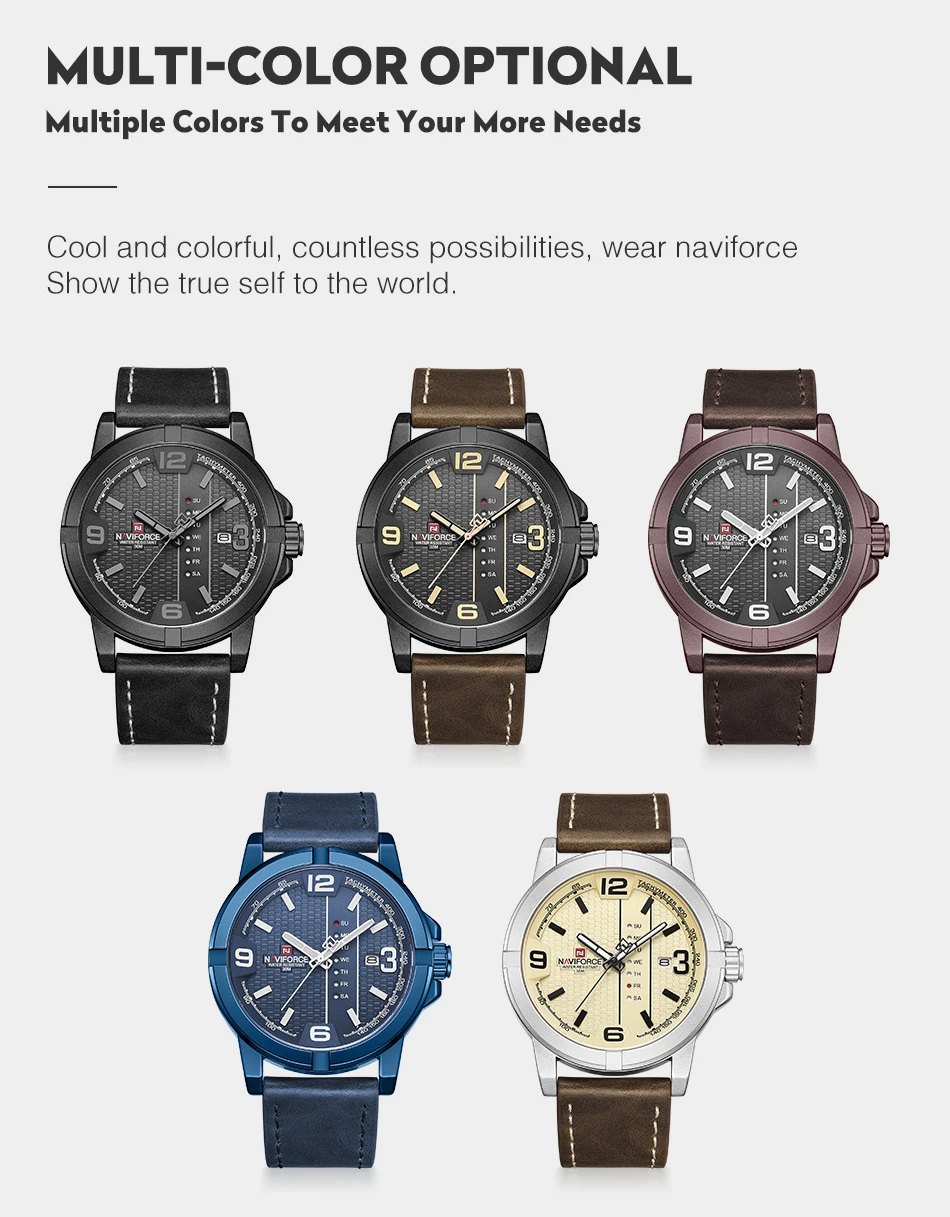 Часы наручные NAVIFORCE Мужские кварцевые в стиле милитари, роскошные Брендовые спортивные водонепроницаемые, с кожаным ремешком, с датой