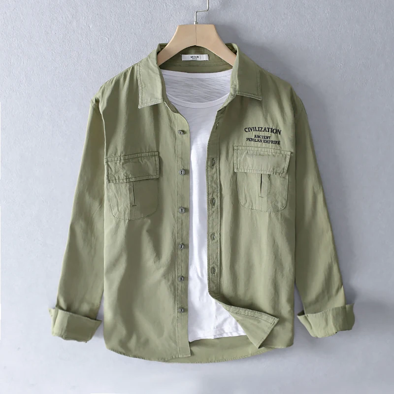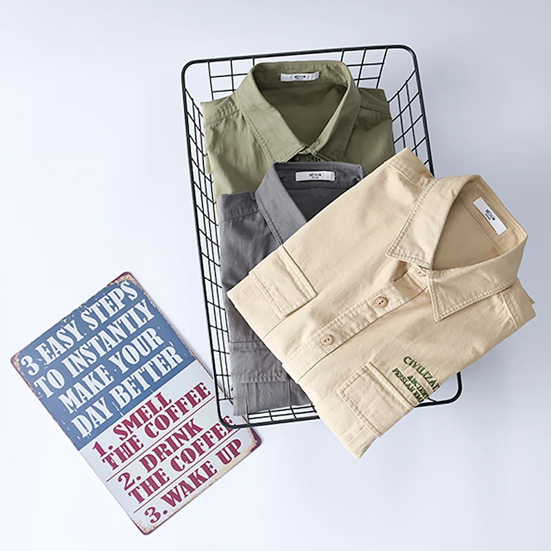 Рубашка мужская хлопковая в французском стиле, брендовая модная однотонная серая рубашка с длинным рукавом, удобная сорочка, весна