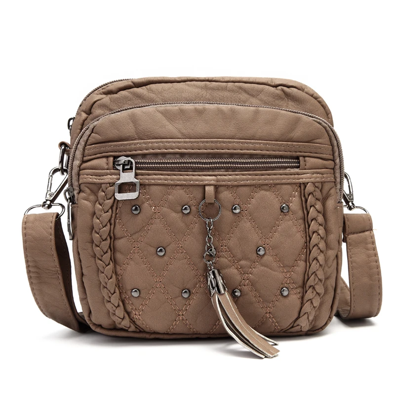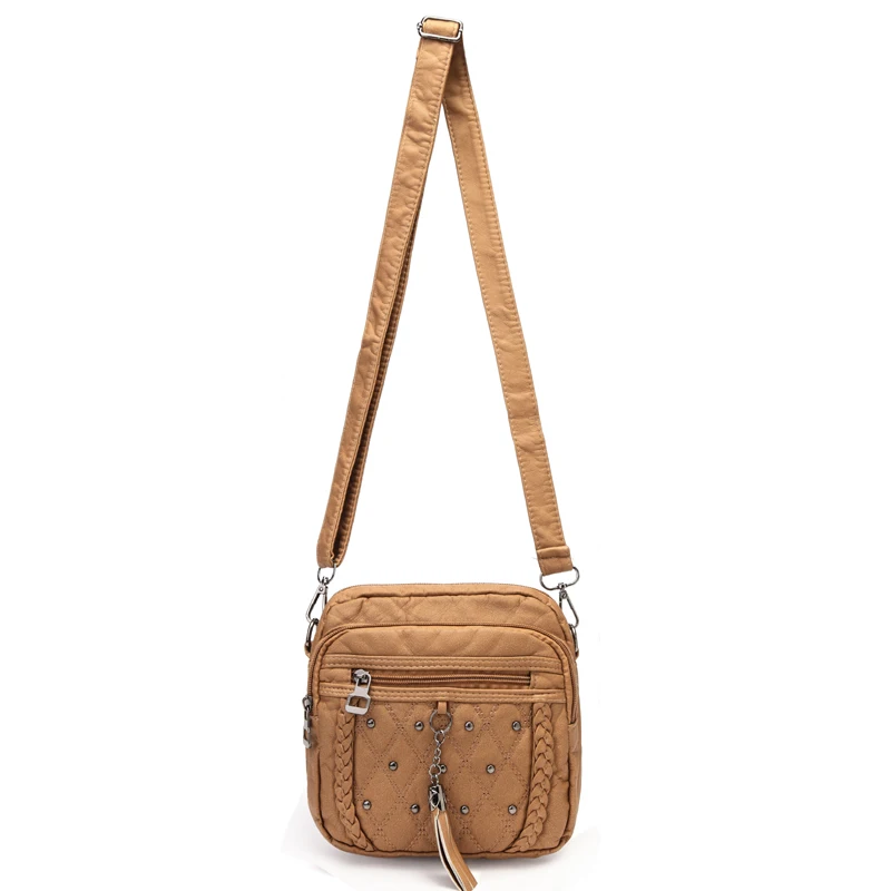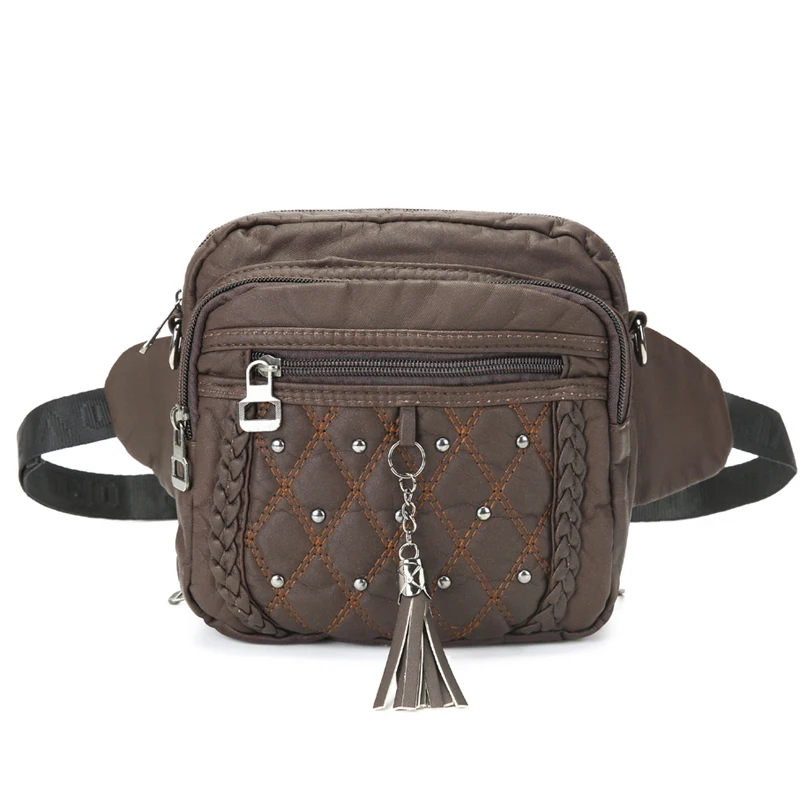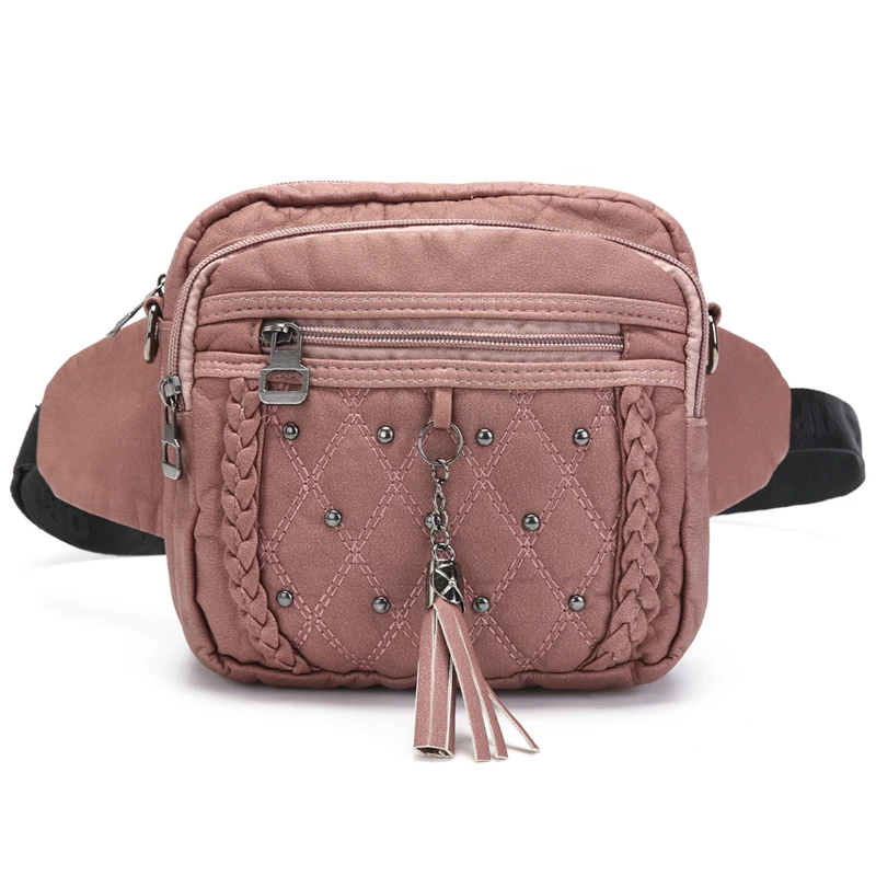 Annmouler модная Маленькая женская сумка из искусственной кожи поясная сумка 2 Функциональная сумка с кисточками Маленькая Сумочка через плечо с карманами