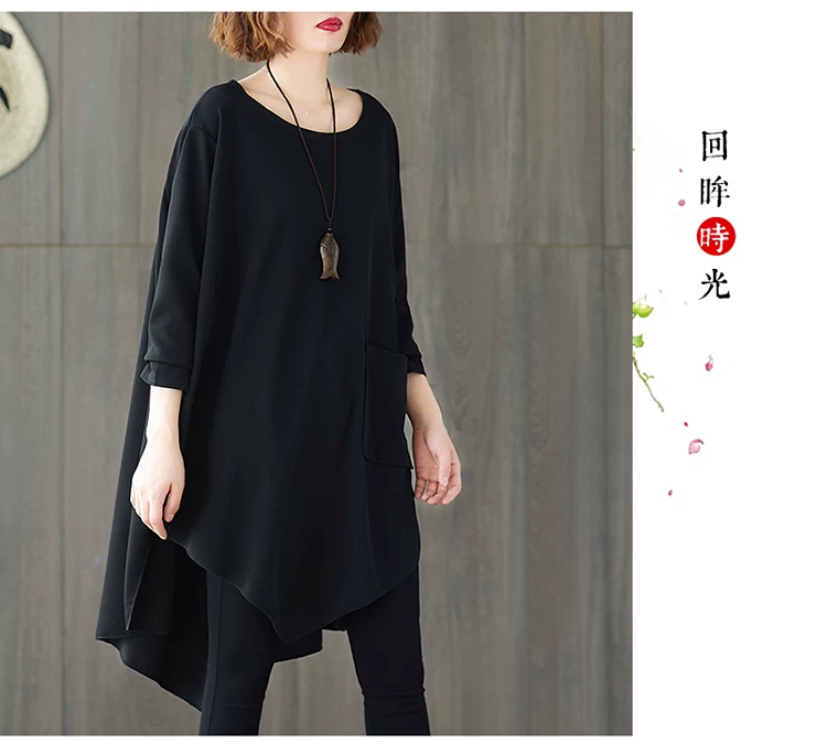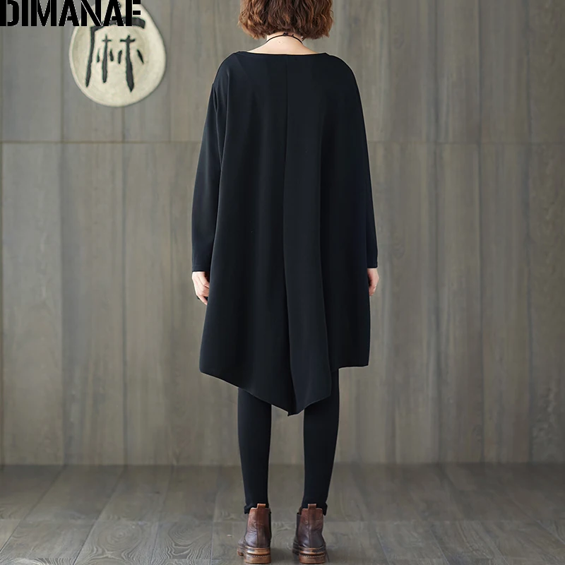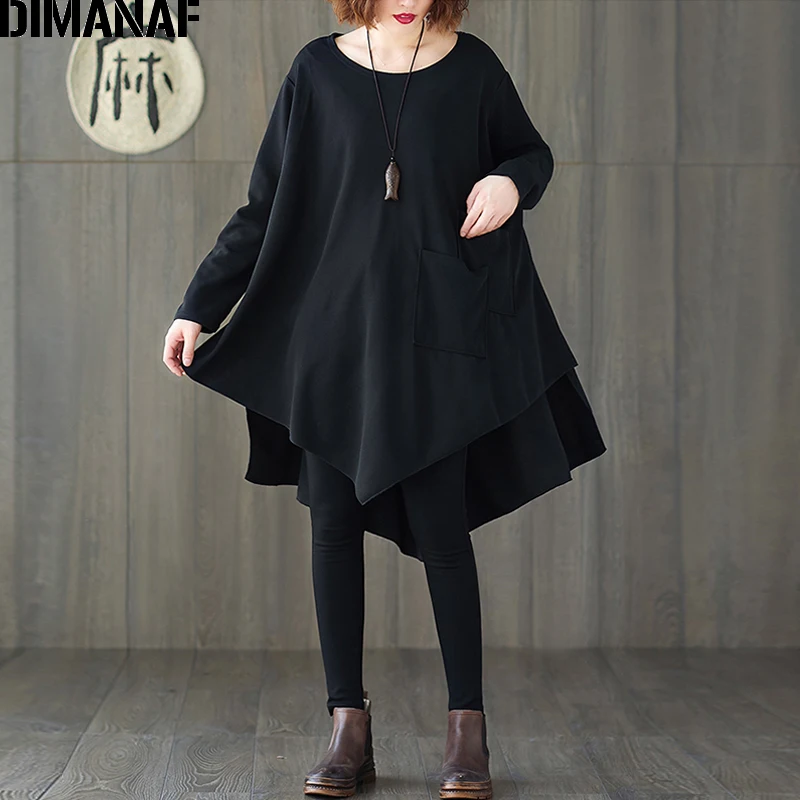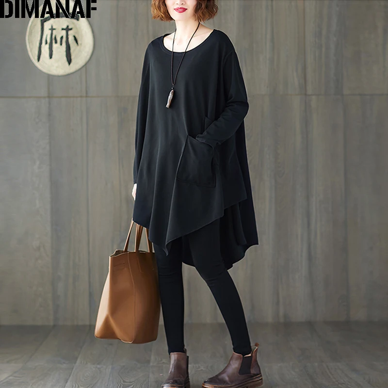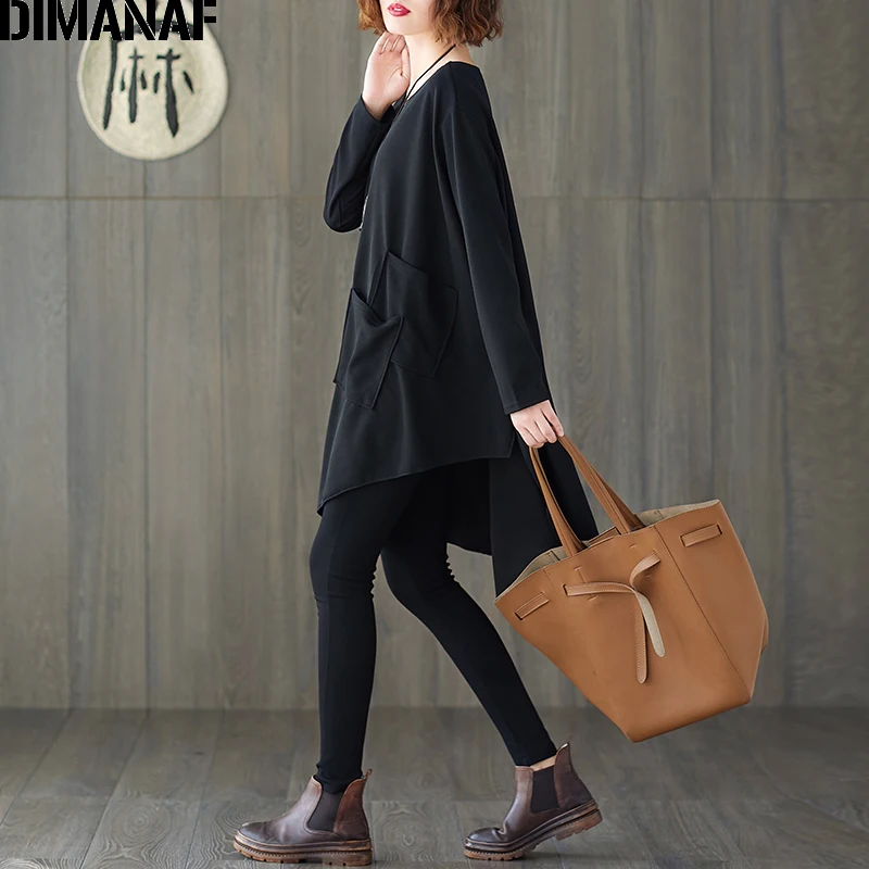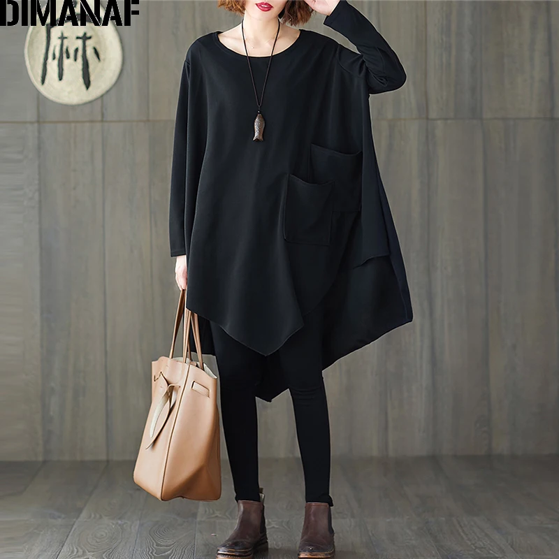 Женская блузка с рукавом летучая мышь DIMANAF, базовая Повседневная однотонная Туника большого размера с размера плюс, однотонная черная, на весну, рубашки Дамские топы