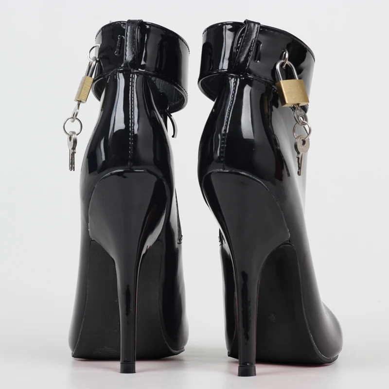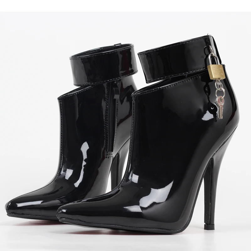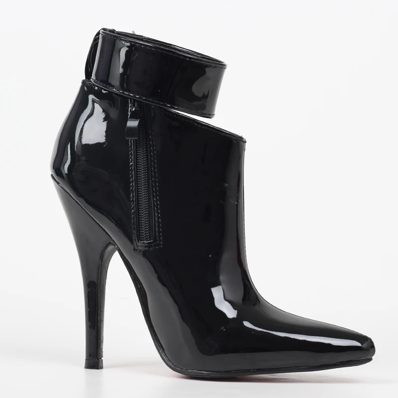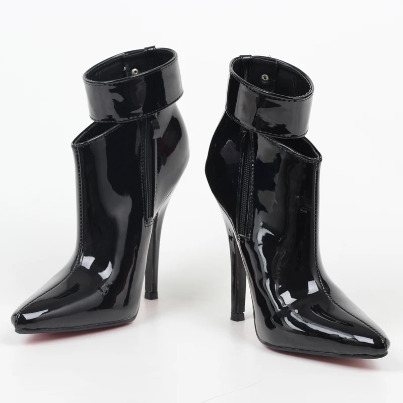 Черные лакированные туфли-лодочки JIALUOWEI на шпильке с широкой шириной, размер 5-15