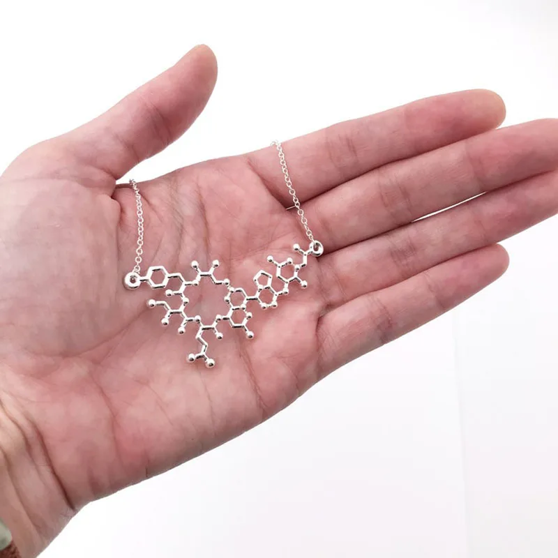 Ожерелье с молекулой окситоцина, подвеска с научной тематикой с молекулярной связью любви, звеньевая цепочка 50 см, Ювелирное Украшение для годовщины выпуска