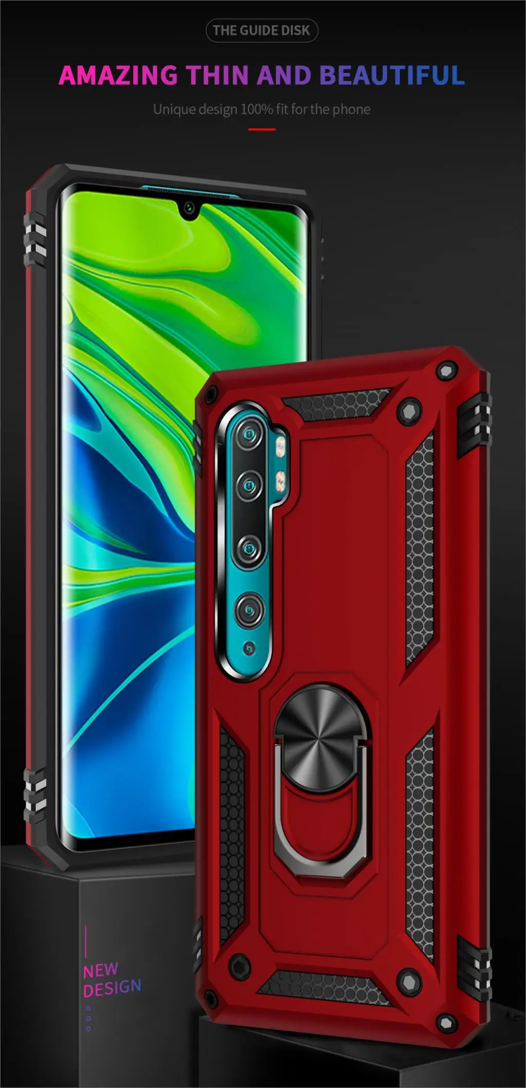 Чехол для Xiaomi Mi CC9 Pro, противоударный, металлический, с кольцом-держателем
