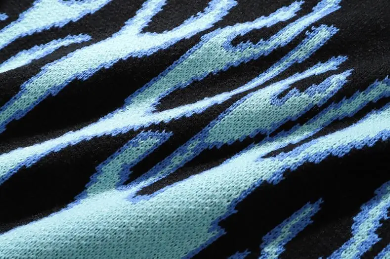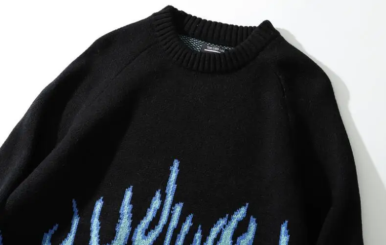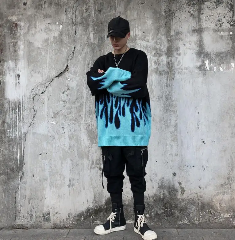Корейский Свободный вязаный пуловер с принтом пламени для мужчин и ...