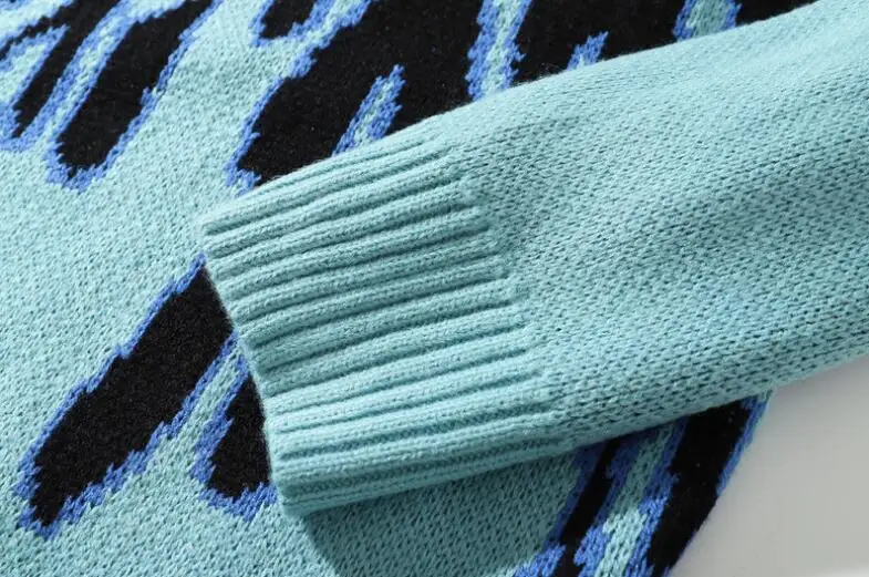 Вязаный свитер с голубым пламенем, мягкий японский плотный осенне-з...