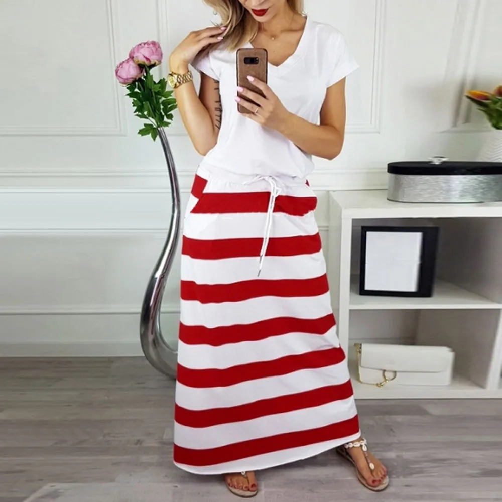 Женская длинная юбка в полоску, с завышенной талией, в стиле Харадзюку, 38 #2019, праздничная юбка, размера плюс