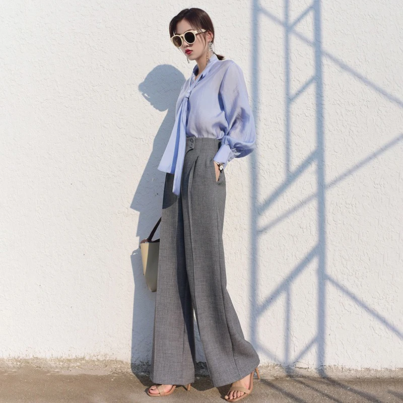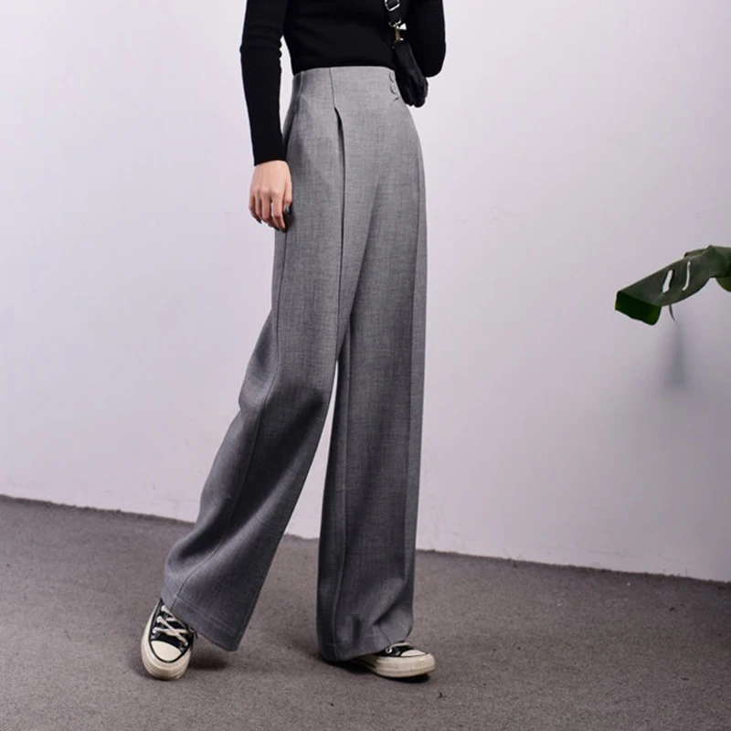 Женские брюки с высокой талией, длинные брюки большого размера на молнии, с широкими штанинами, весна 2020