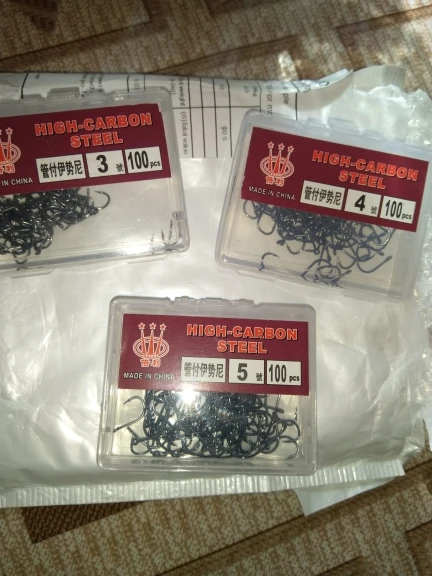 Доставка вышла консолидированная, поэтому оперативная. Качество - у 4 номера много (где-то четверть) крючков с колечками неаккуратными (как бы леску поводковую не рвали...), у 3 номера - ровненькие. Острота хорошая, как быстро затупятся покажет практика. По количеству - у 4 номера ровно 100 шт., у 3 номера - 96 шт. и 1 шт. брак. У этого продавана еще раз заказывать воздержусь.