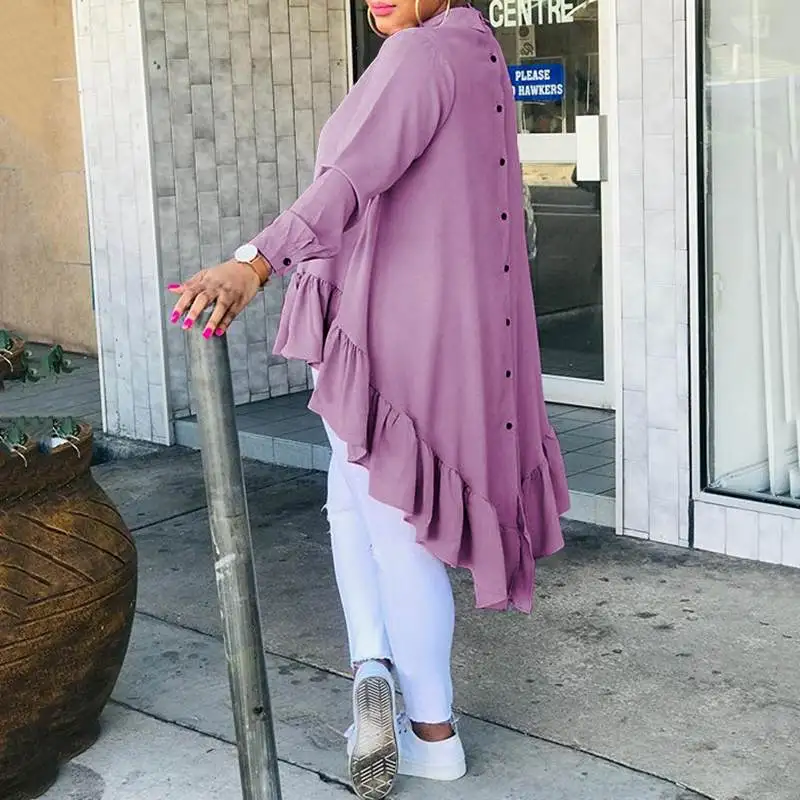 Блузка Celmia Женская ассиметричная, модная Однотонная рубашка с пуговицами сзади и оборками, Повседневная Блузка с длинным рукавом и лацканами, 2021