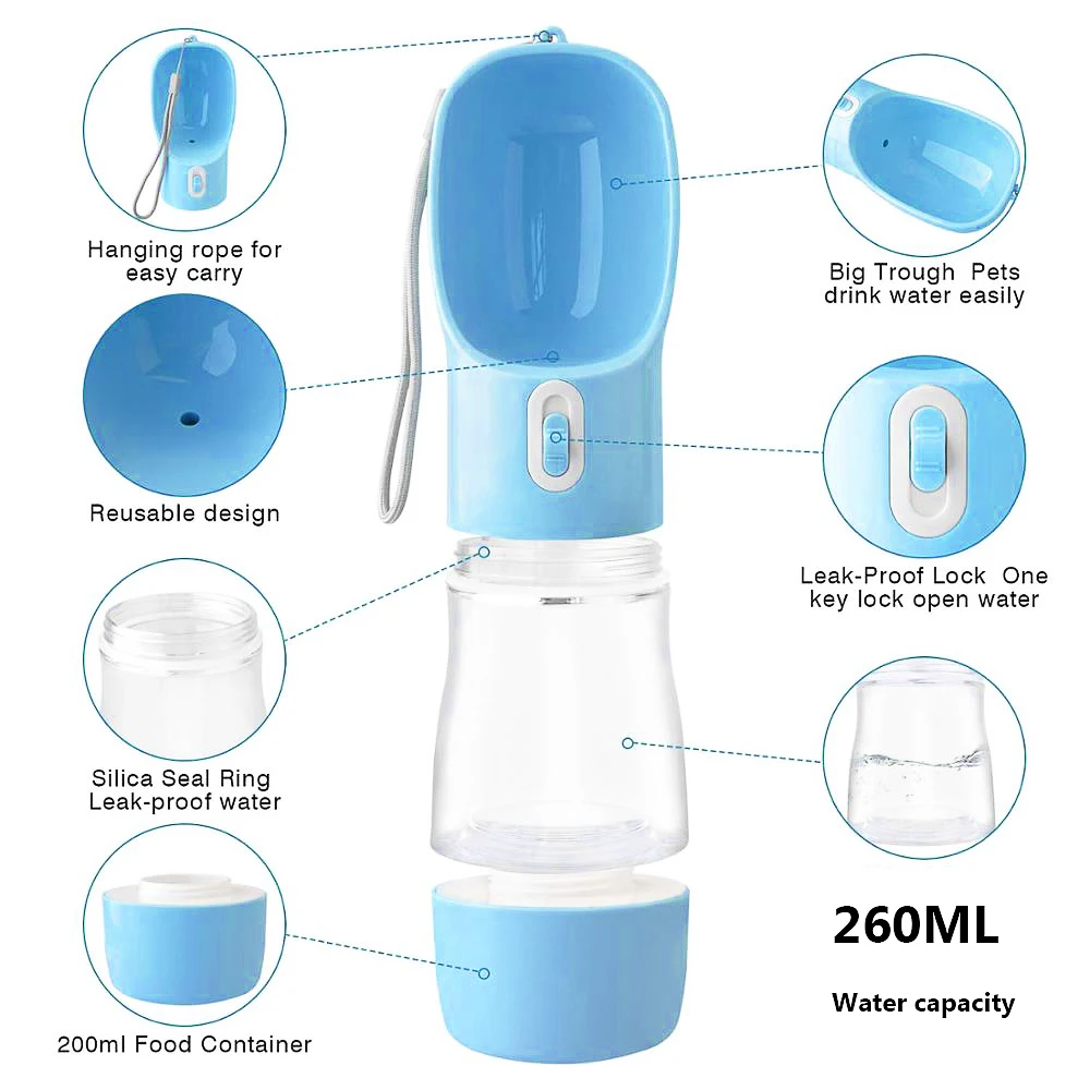Портативная бутылка для воды для домашних питомцев, бутылка с питьевой миской для воды и еды, для путешествий и прогулок с собаками