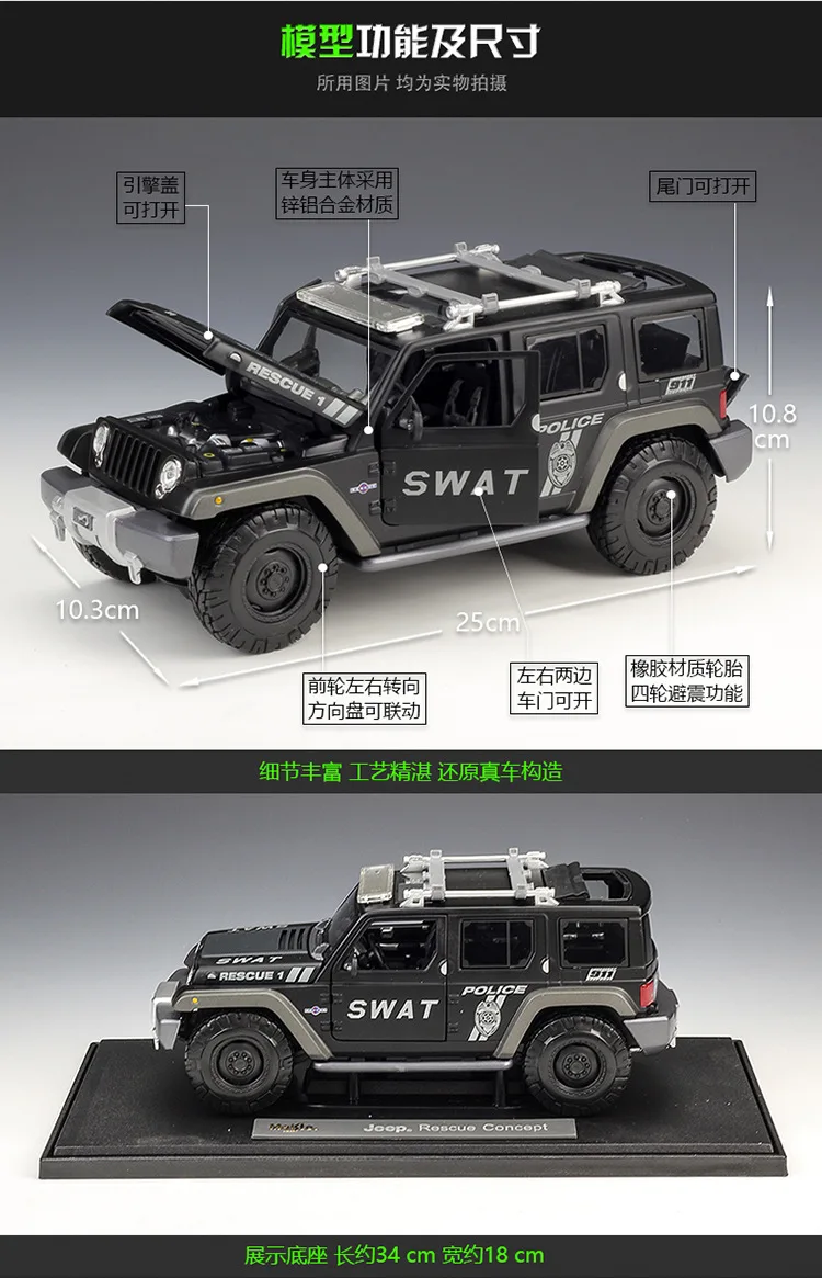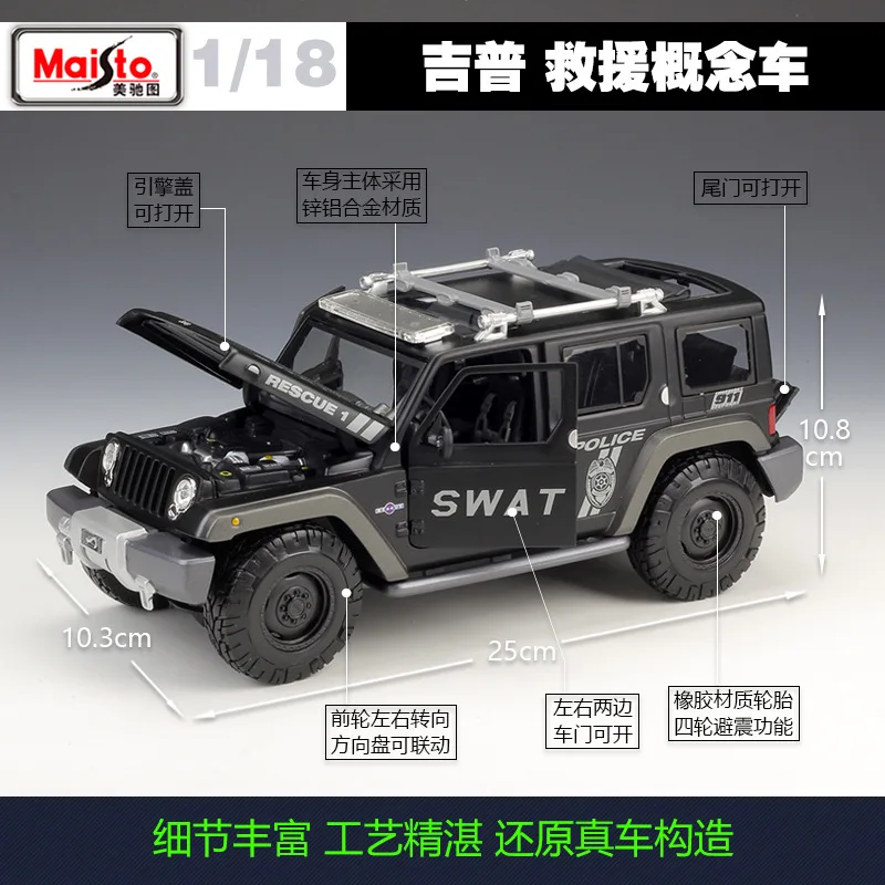 Maisto 1:18 Jeep Rescue Concept Полицейский Автомобиль Моделирование сплав модель автомобиля коллекция Подарочная игрушка