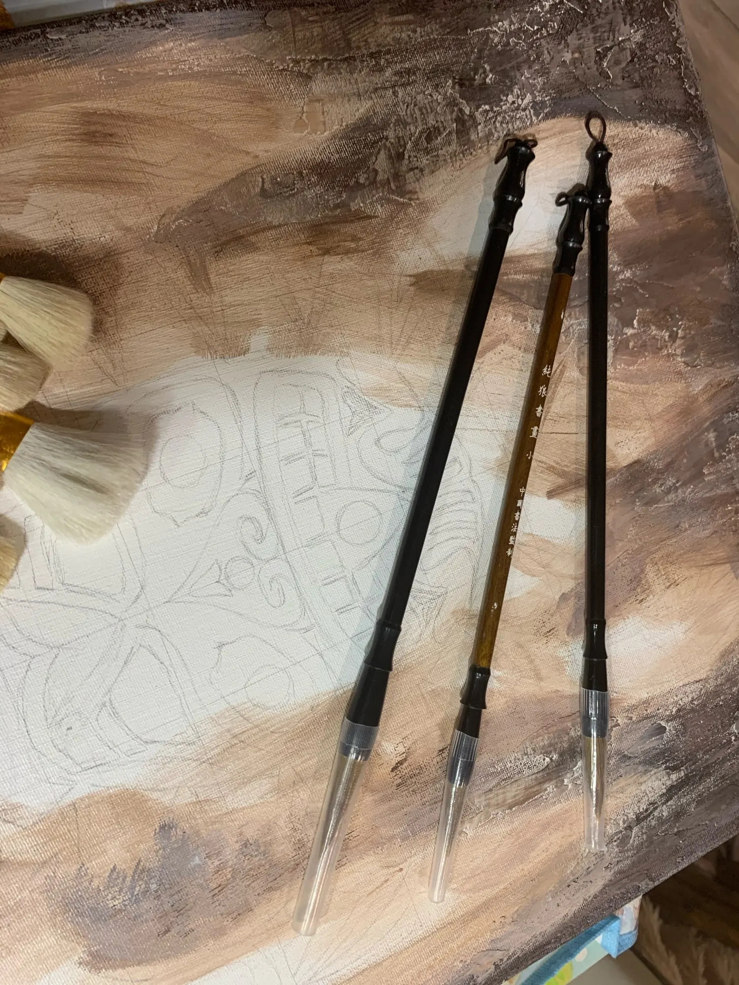 Кисти для китайской каллиграфии, с деревянной ручкой