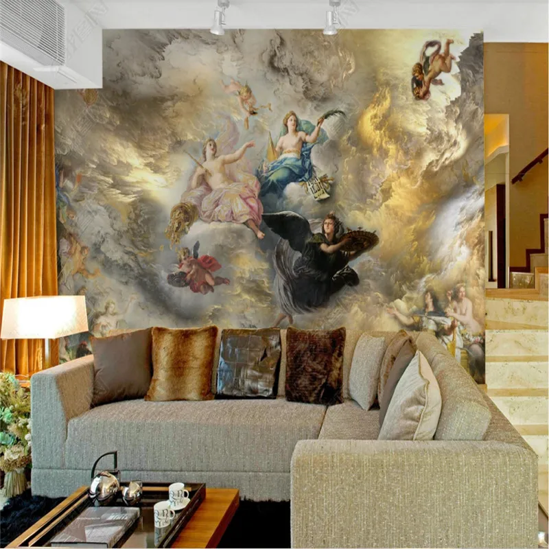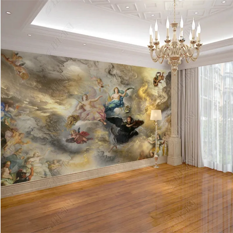 Картина маслом в европейском стиле с ангелом, 3D фон для гостиной, спальни, Настенная роспись, декор для потолка, обои, 3D настенные бумаги, домашний декор