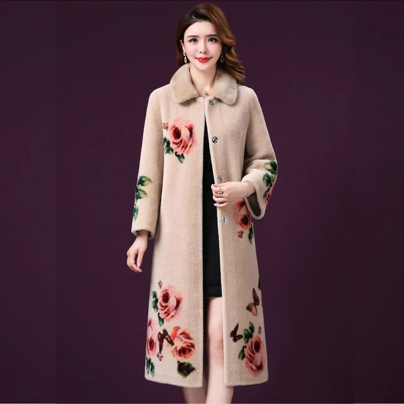 2019 зимнее модное женское пальто из искусственного меха норки с цветочным принтом бабочки, длинное пальто для женщин, женские теплые пальто