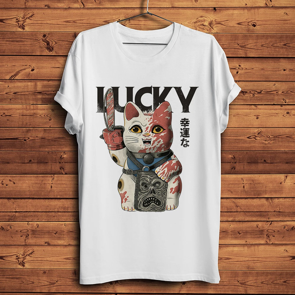 Забавная Мужская футболка с принтом кота удачи и Неко, белая Повседневная футболка унисекс, уличная одежда, Япония