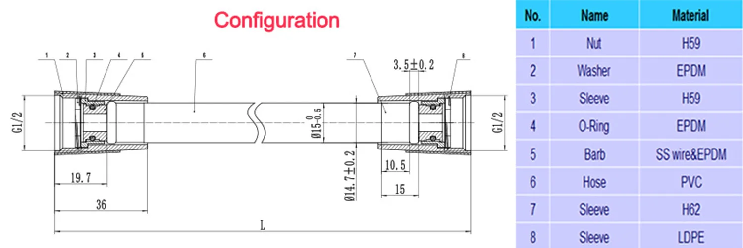Шланг для душа LEDFRE F12 дюйма * F12 дюйма, ПВХ шланг серебристого...