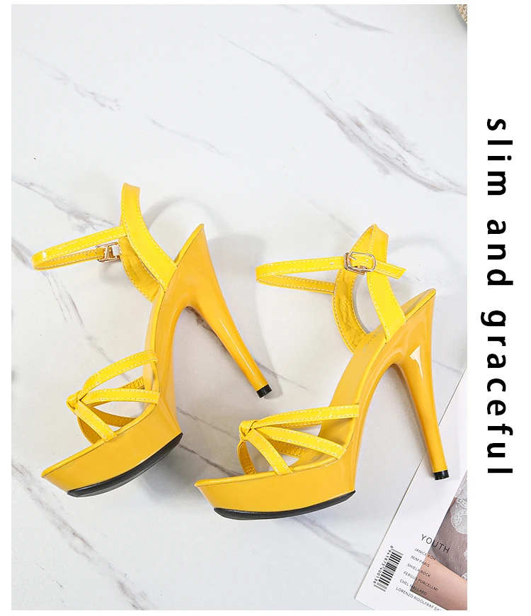 Брендовая обувь женские сандалии из лакированной кожи с завязками, 8 цветов сандалии для прогулок и стриптиза модельные сандалии на высоком каблуке 13 см