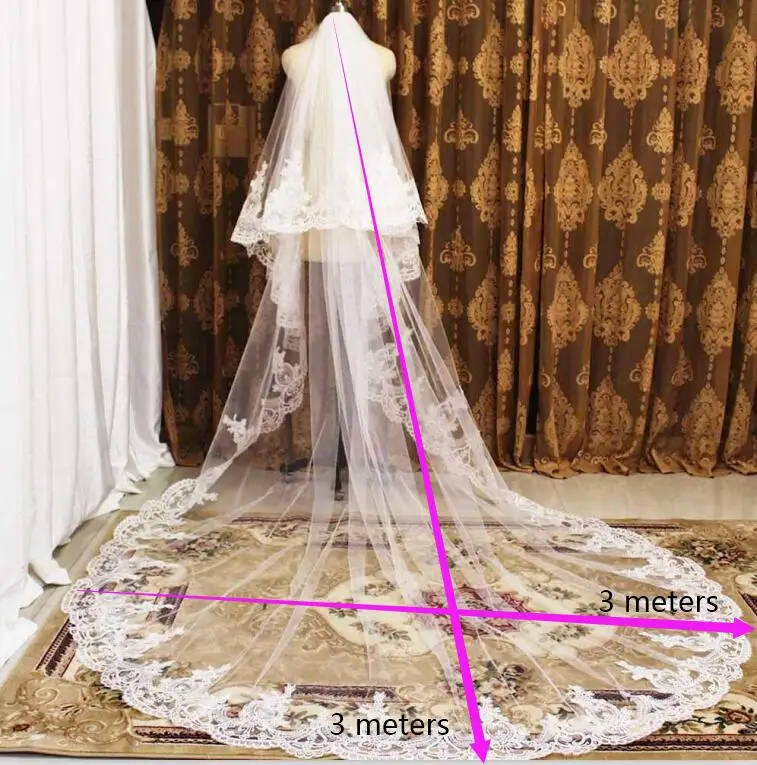 Высококачественная свадебная фата длиной 3 метра, Кружевная апплика...