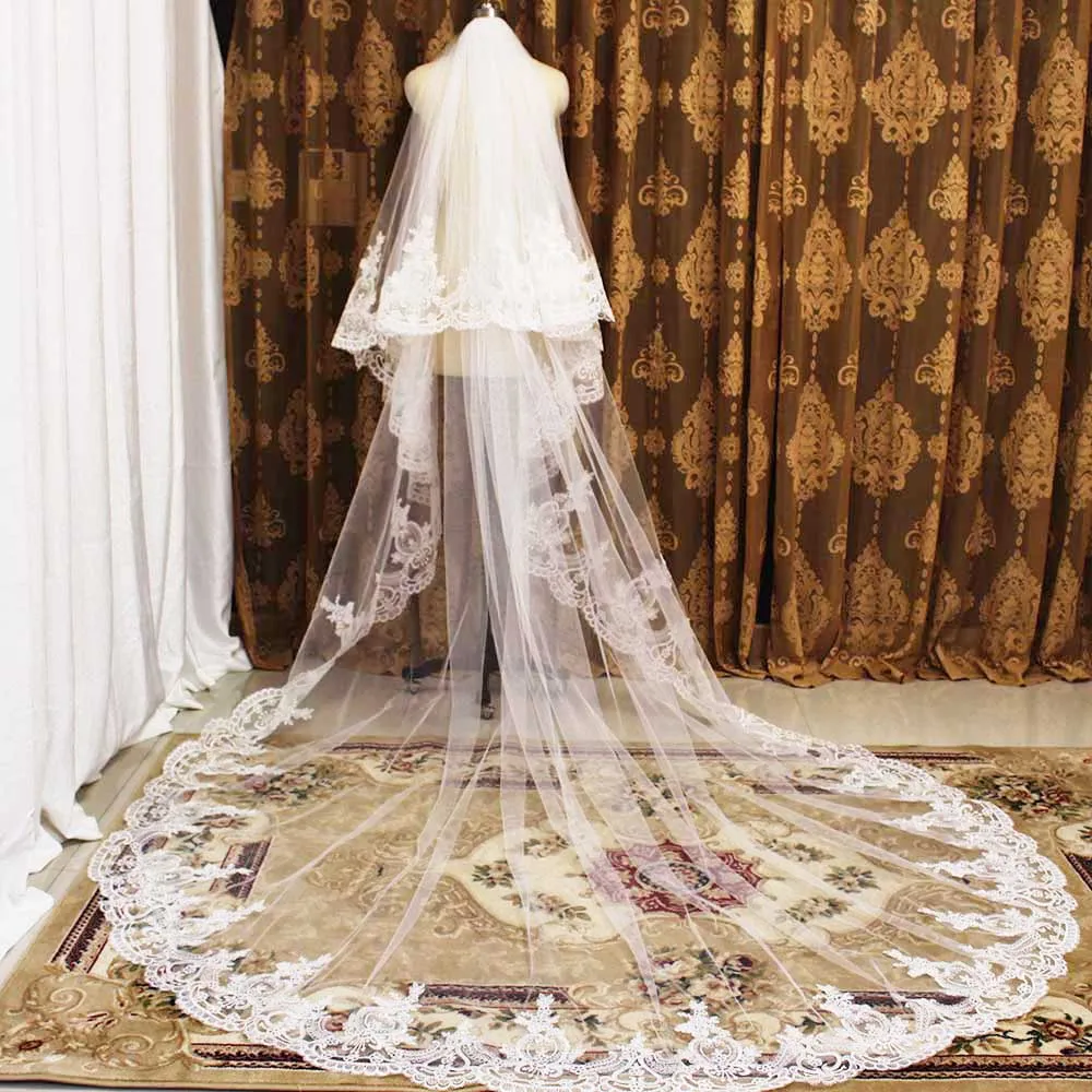 Длинное кружевное платье свадебная фата 2 слоя 4 метры свадебная ву...