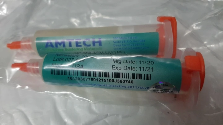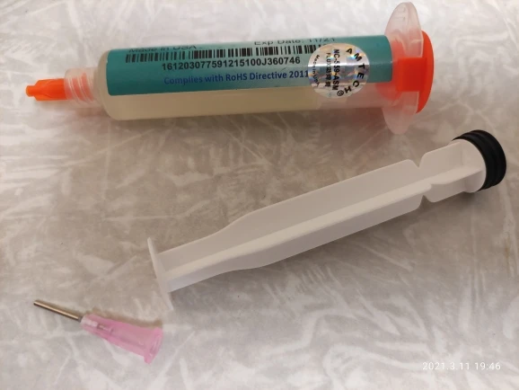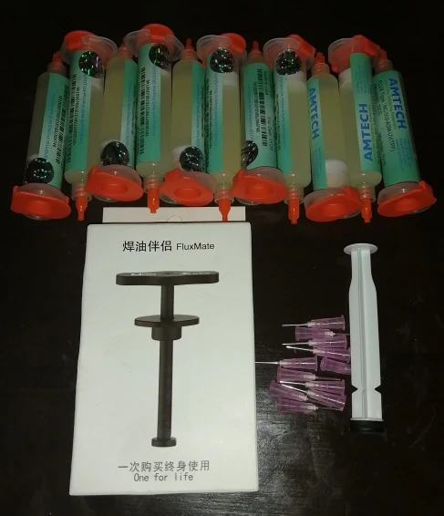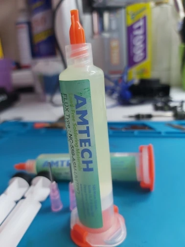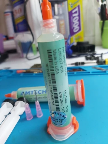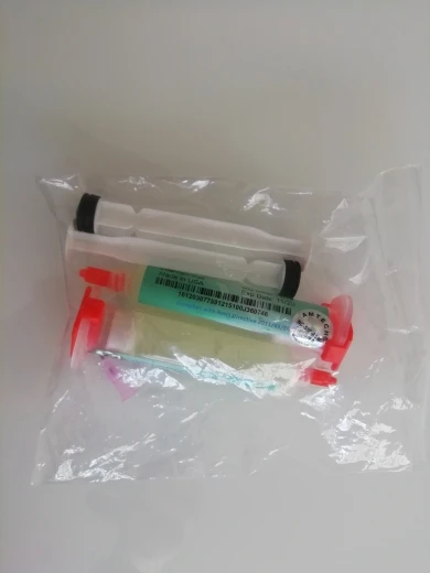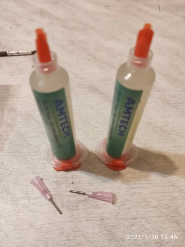Флюс оказался не жидкий, а в виде желе. Не знаю, то ли его отправили уже таким, то ли высох пока ехал до меня, хотя шприц был закрыт (доставка была очень долгой, больше 2 месяцев, но это не вина продавца).