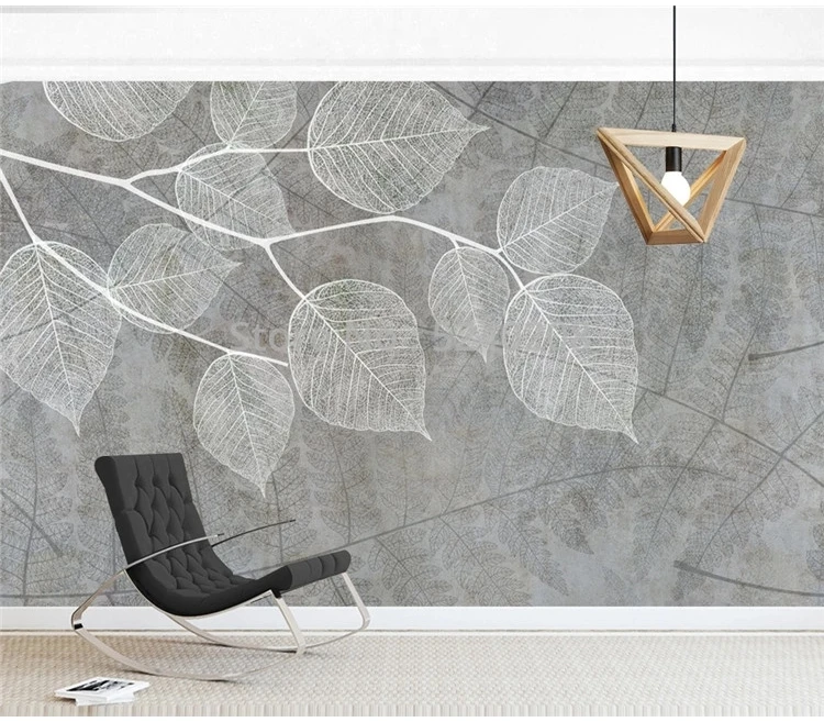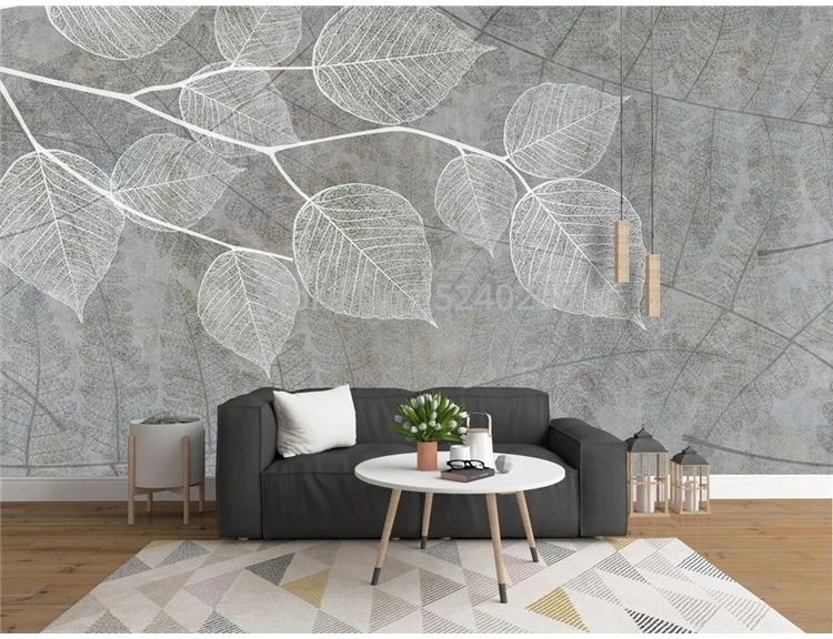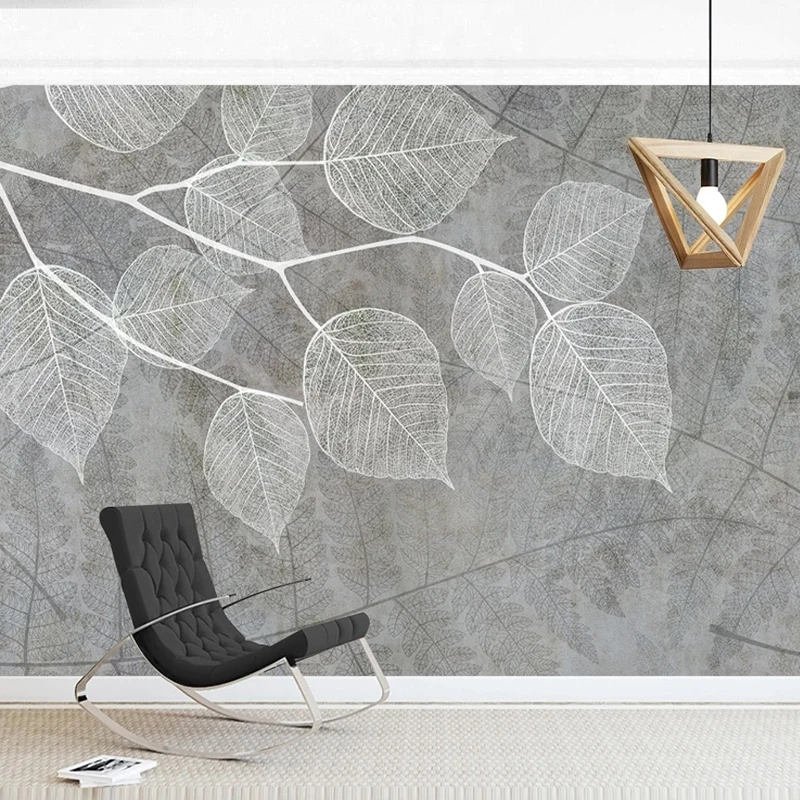 Пользовательские самоклеющиеся водонепроницаемые обои Современные Простые листья вены линии цемента стены фото фрески гостиной спальни 3D наклейки
