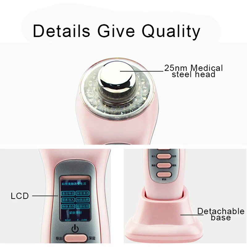 7 в 1 Светодиодная фотонная световая терапия инструменты для ухода за лицом USB ионная ультразвуковая Вибрация косметическая машина подтягивание омоложения кожи