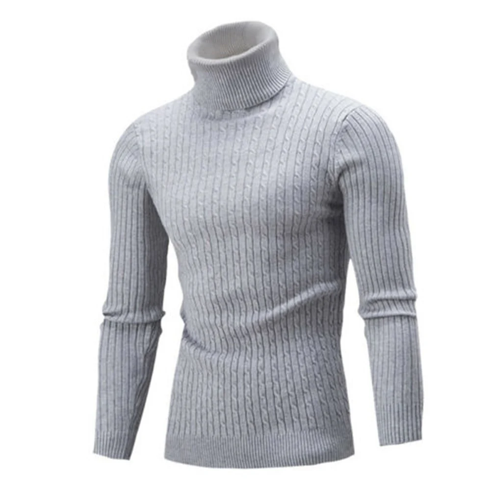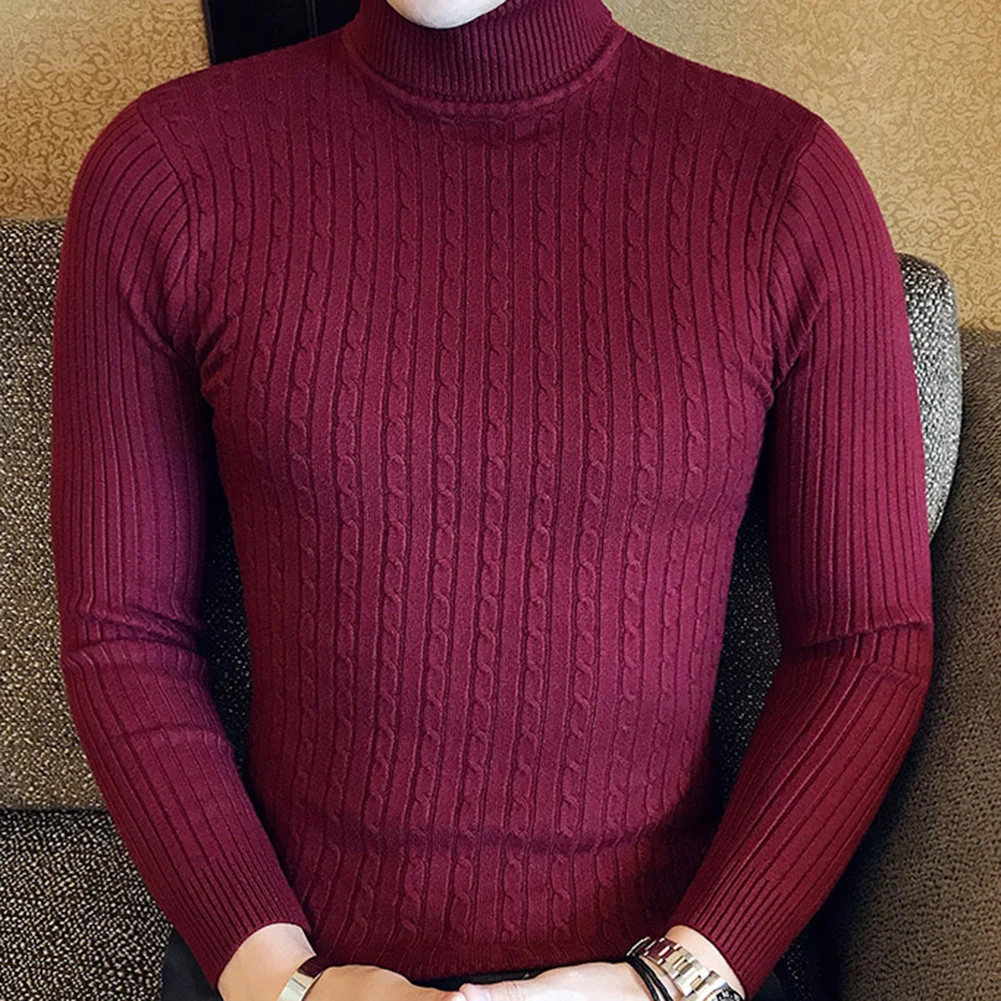 Зимний мужской пуловер, свитера, Однотонный свитер с длинным рукавом и воротником-стойкой, вязаный свитер, базовые облегающие мужские пуловеры, Свитера
