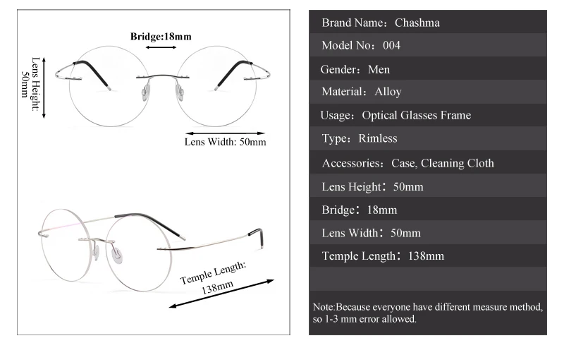 Item NameNew Brand Titanium Rimless Eyeglasses Frames Round Vintage Glasses