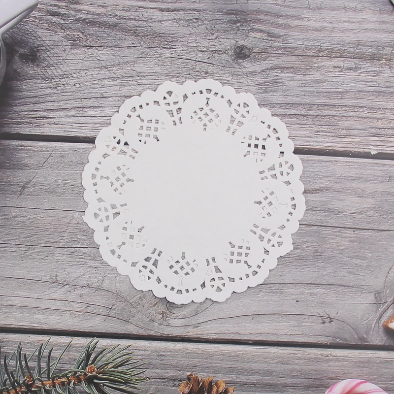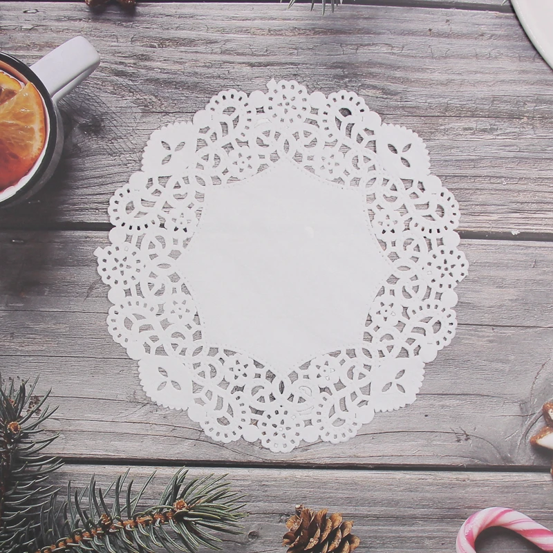 50 шт., белые кружевные бумажные подставки для украшения стола на свадьбу, Рождество, круглые бумажные кружевные салфетки