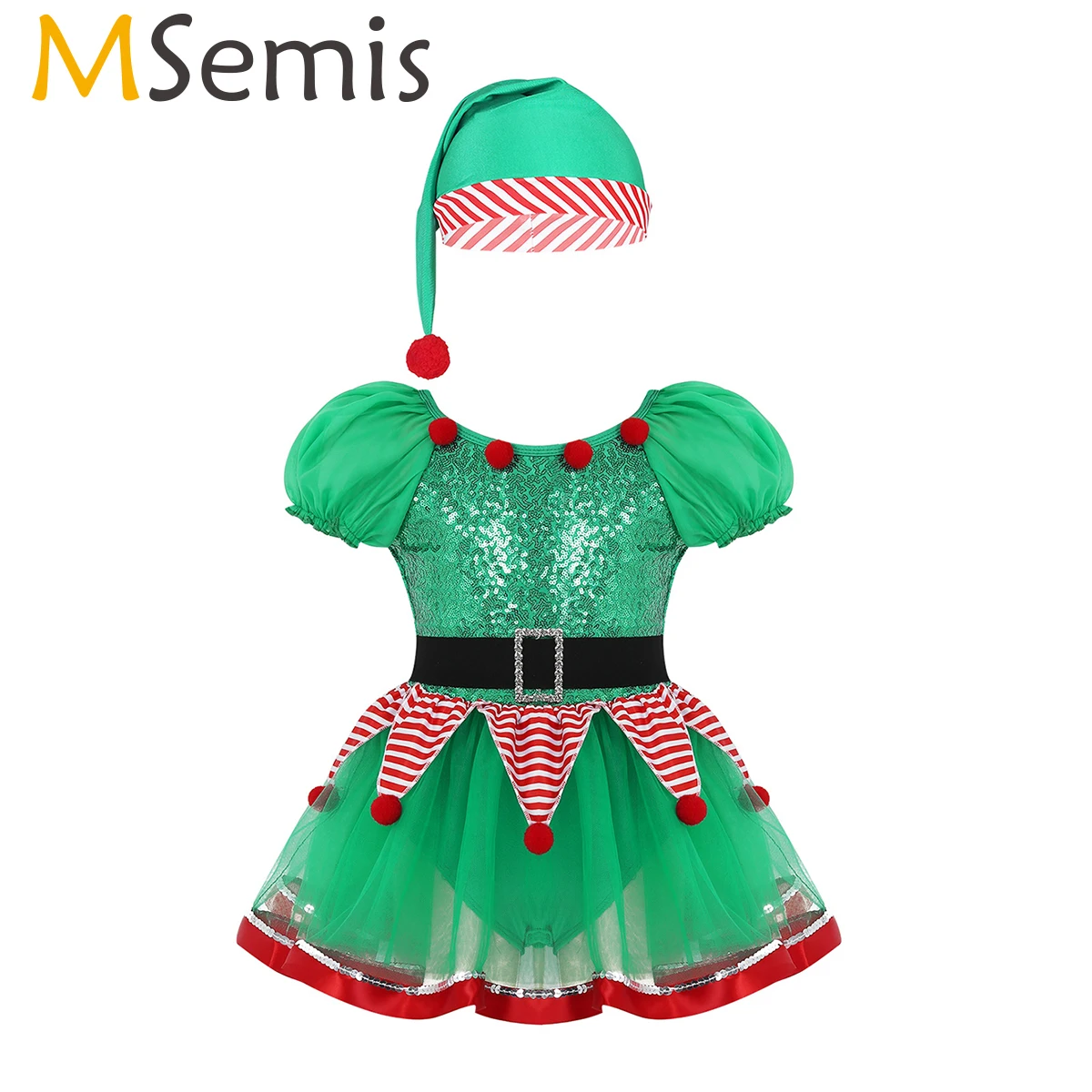 Детское платье для девочек MSemis, Рождественский, новогодний, праздничный, сказочный костюм духа, Костюм Балерины, блестящая, в полоску, летняя шапка