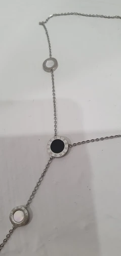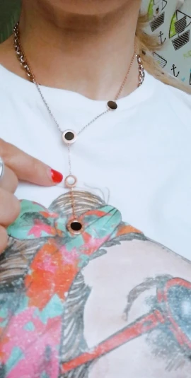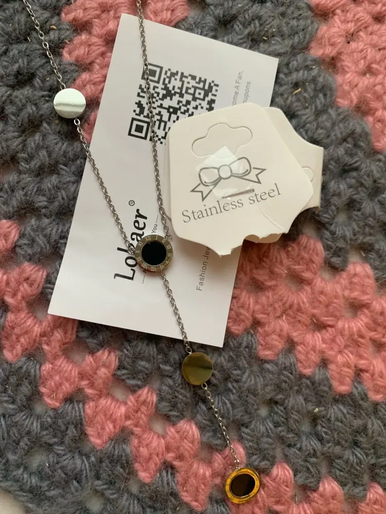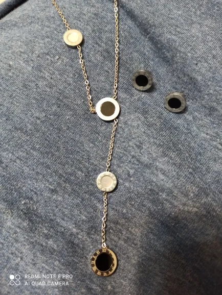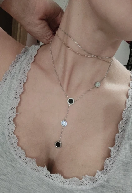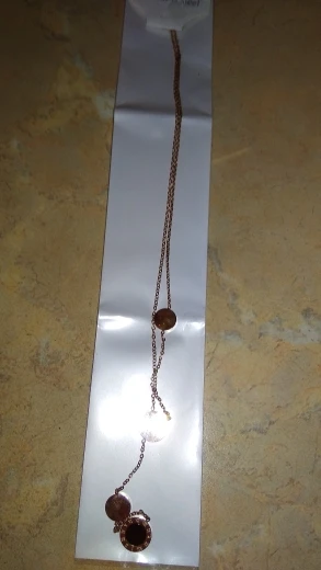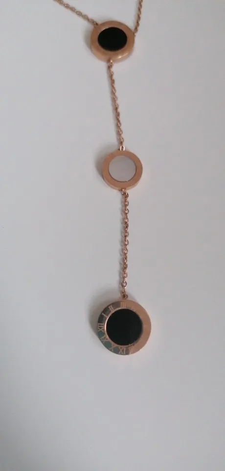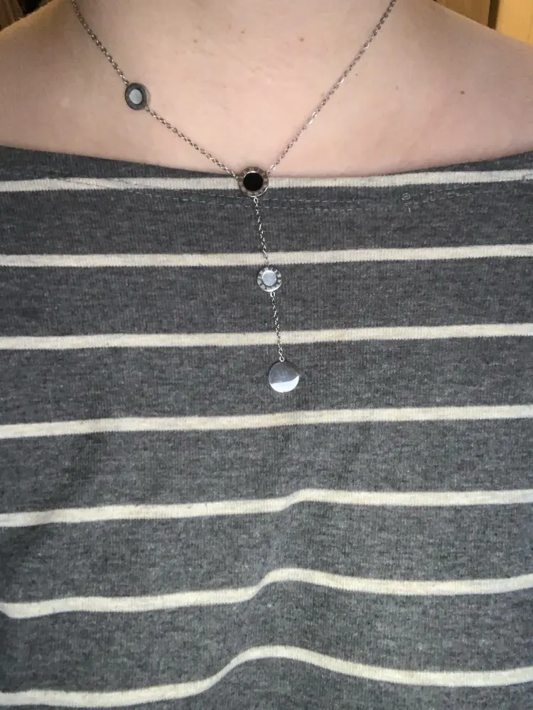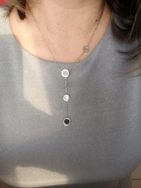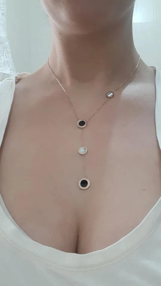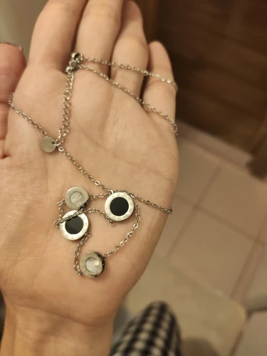 Украшение милое, но мне попалось неудачной сборки - кулоны с персамутром зафиксированы с обратной стороны и при носке, сколько их не поправляй, они всегда встают на место. Если повесить наоборот, то чёрные кулоны развернуты задней стороной. Носить не могу, к сожалению