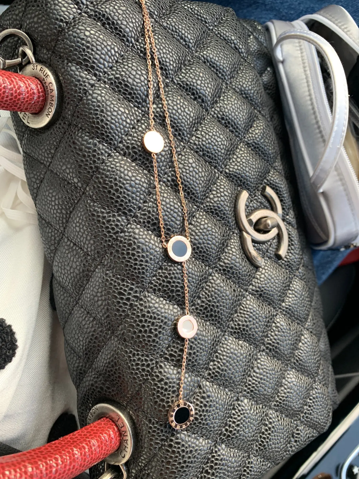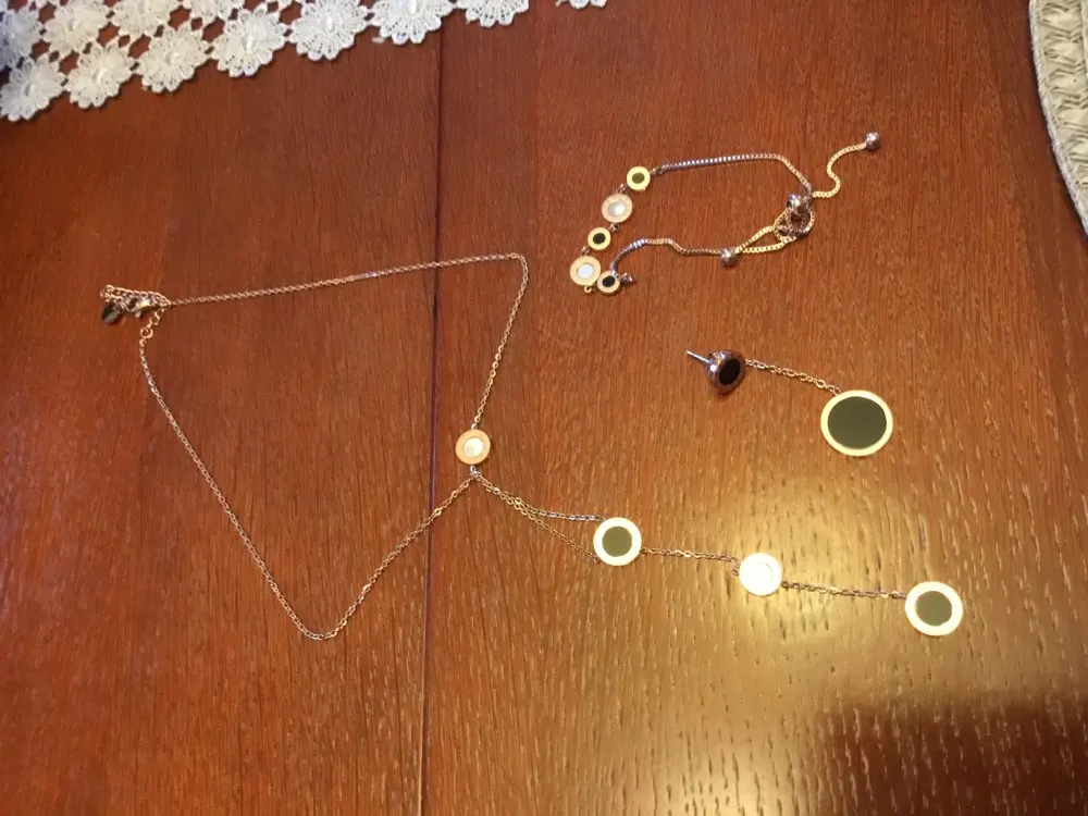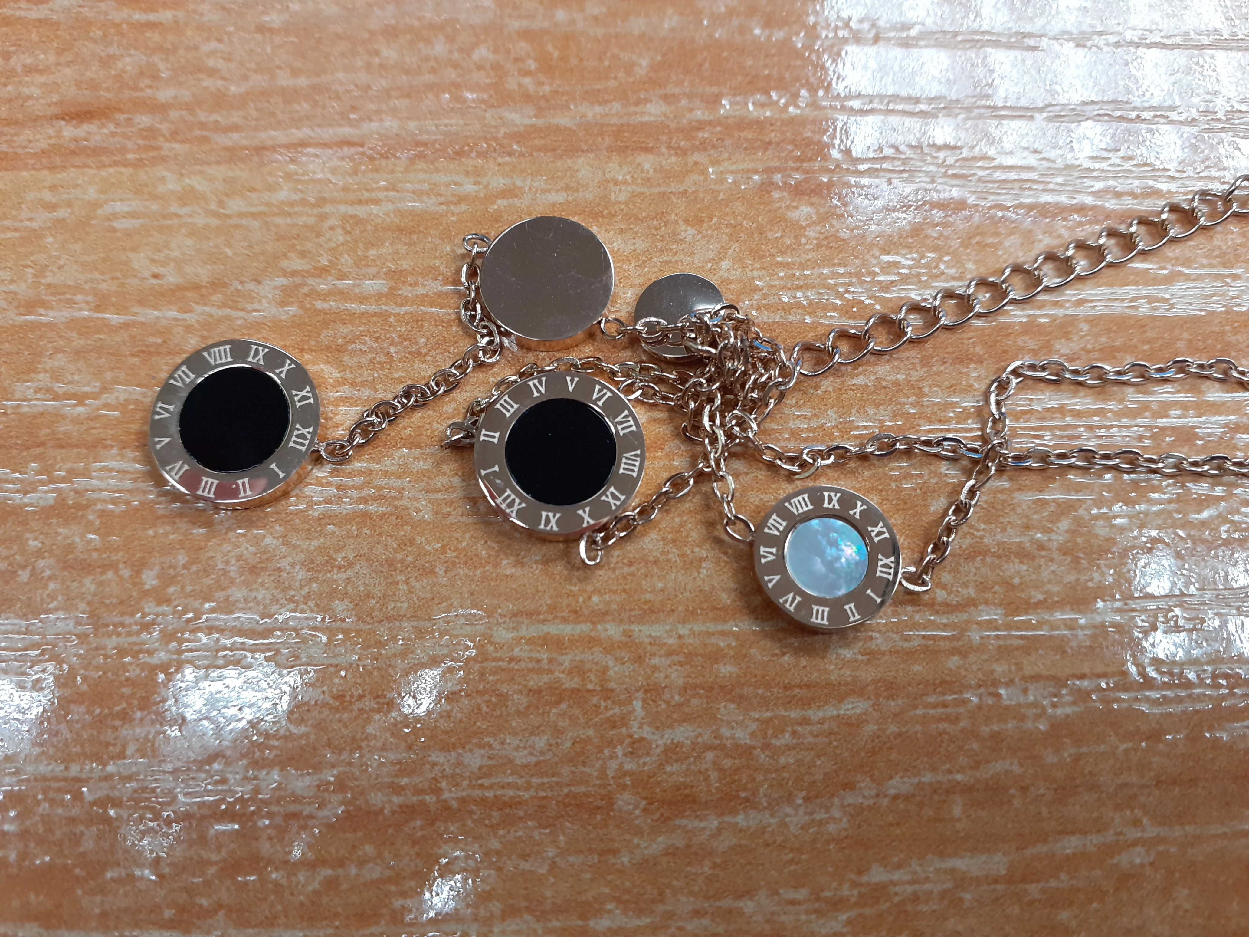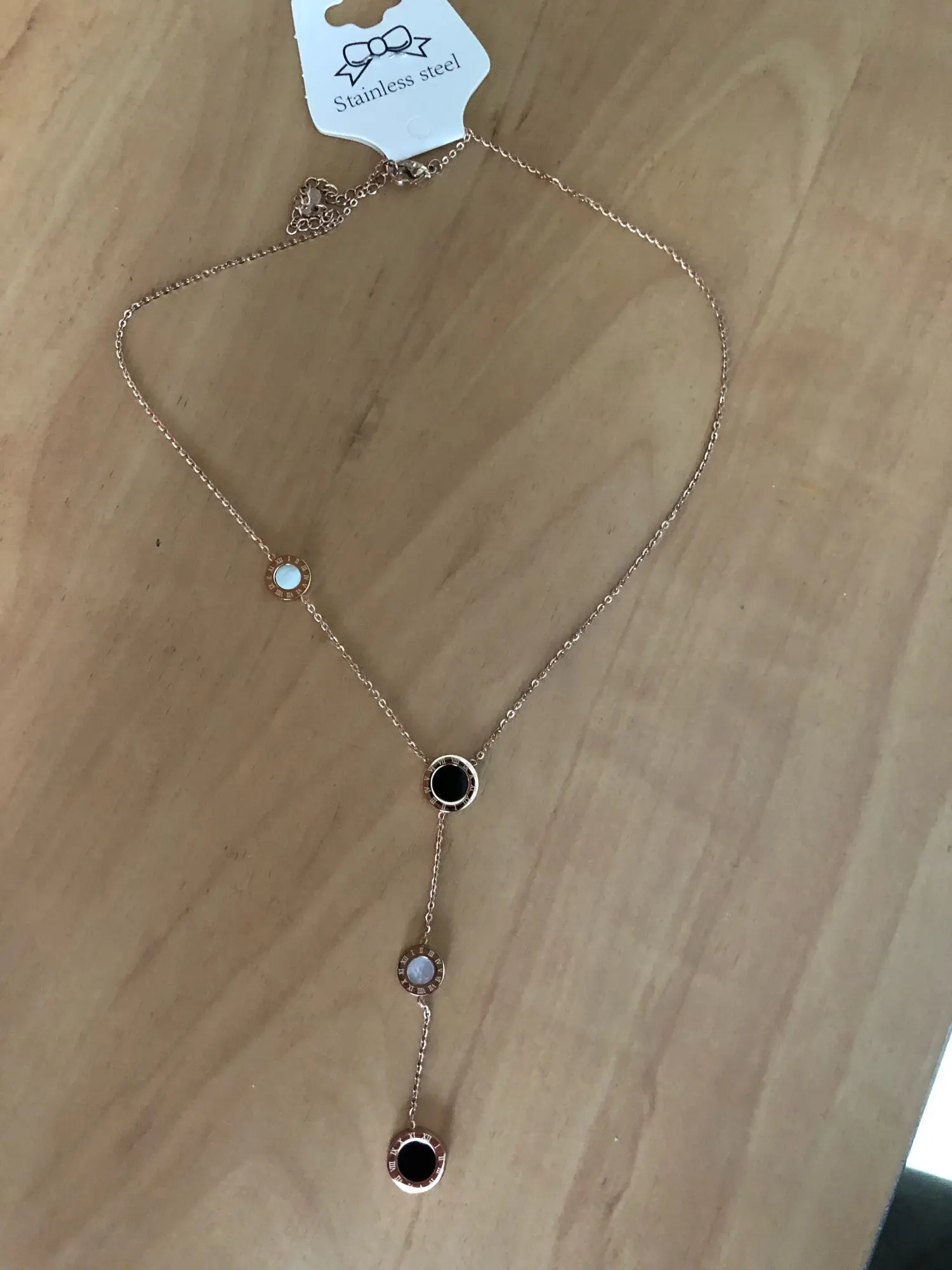 Украшение милое, но мне попалось неудачной сборки - кулоны с персамутром зафиксированы с обратной стороны и при носке, сколько их не поправляй, они всегда встают на место. Если повесить наоборот, то чёрные кулоны развернуты задней стороной. Носить не могу, к сожалению