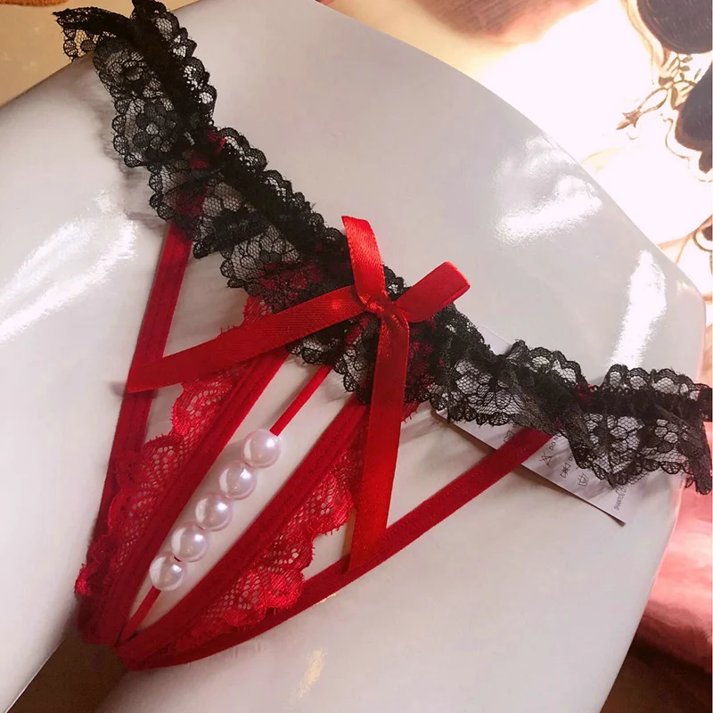 M L XL размера плюс нижнее белье женские кружевные трусы с жемчугом трусики с бусинами для секса стринги с открытой промежностью G стринги Прозрачное нижнее белье
