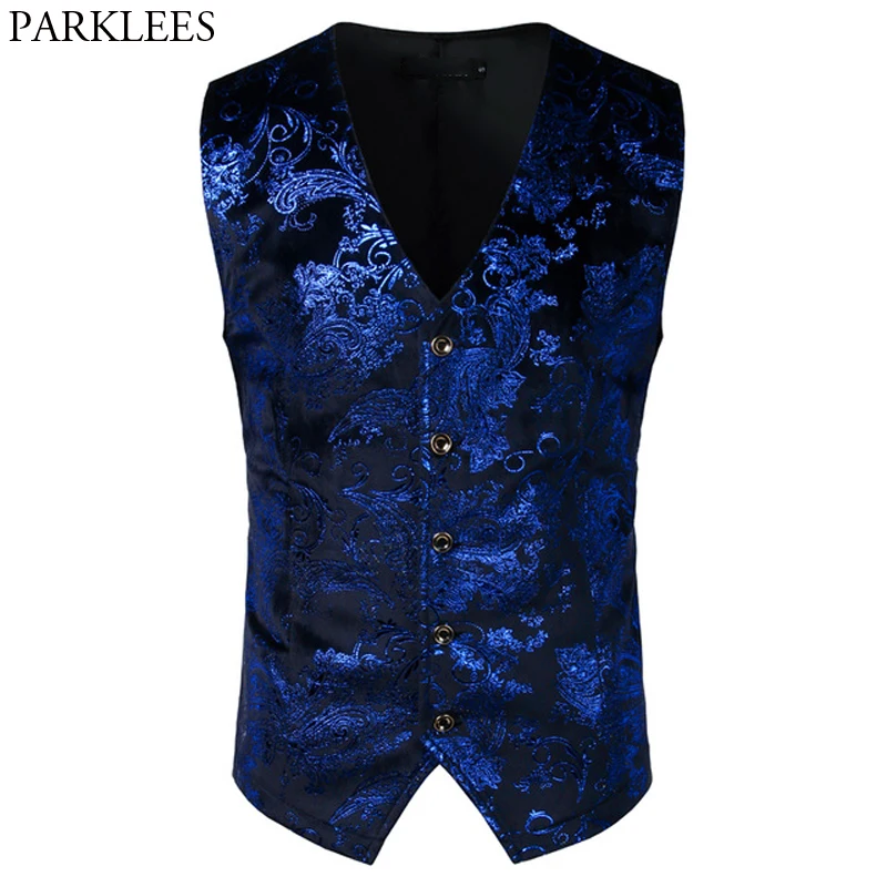 Мужской жилет в стиле стимпанк, свадебный жилет Королевского синего цвета с узором пейсли, v-образным вырезом, готический жилет