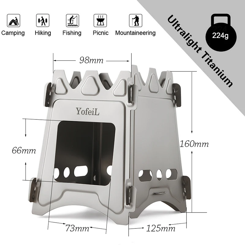 Напольная дровяная плита для кемпинга, титановая плита, ультрапрочный светильник, складная плита для походов, путешествий, пикника