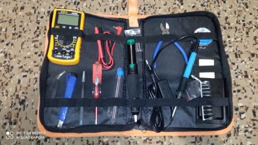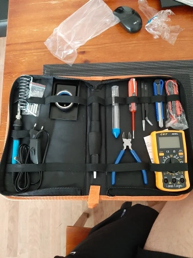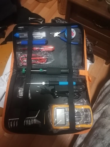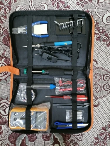Взял набор лишь потому что у него была быстрая доставка. Сам набор неплохой, но очень мало всего. Нет флюса и ножика для зачистки изоляции. Расстроила индикаторная отвертка очень тусклая не везде работает, но она может меняться крестовую на плоскую, также длина провода короткая у паяльника всё остальное соответствует описание