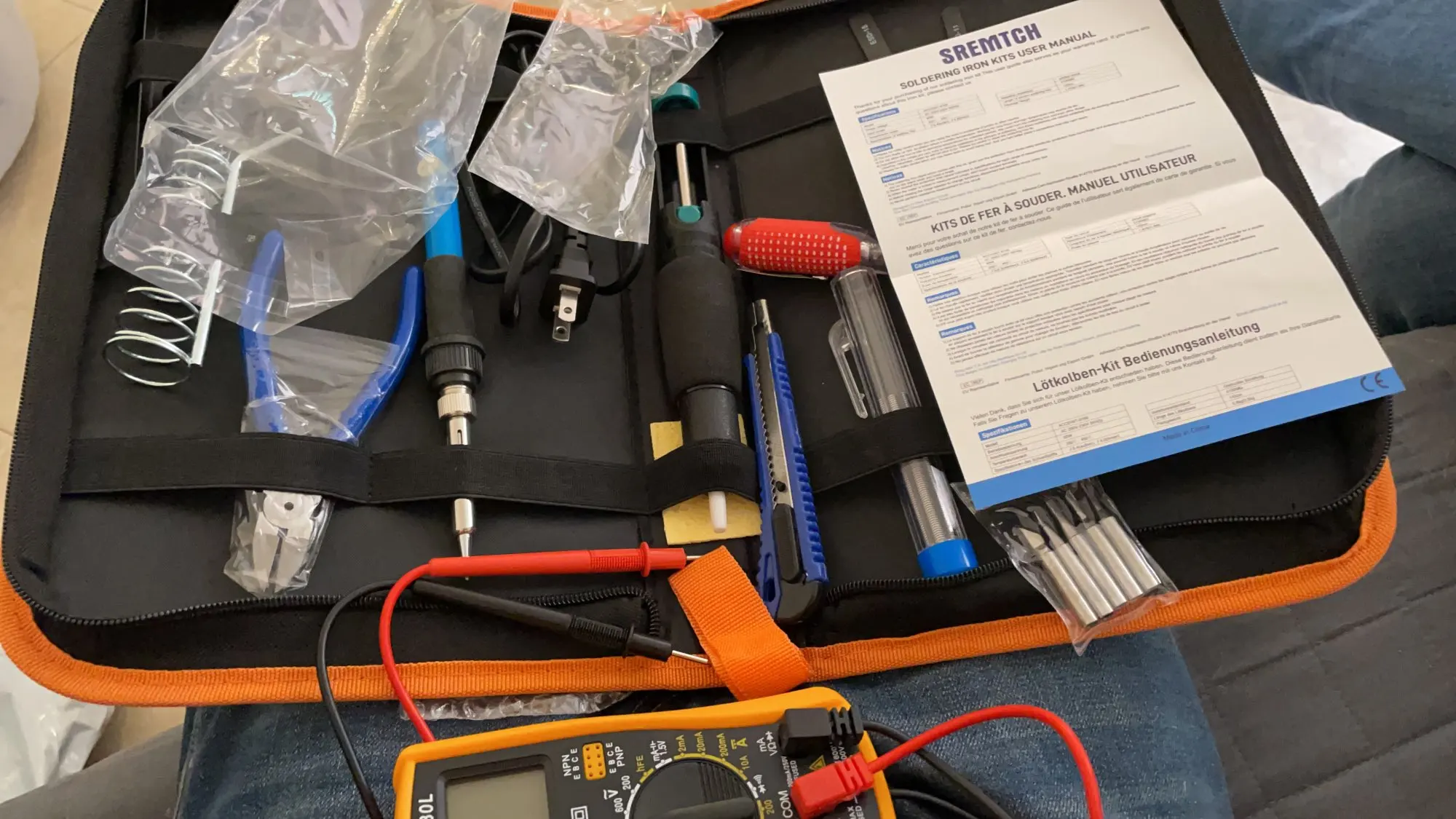 Посылка приехала ужасно быстро всего лишь 5 дней .И приехала правда сночала на мою почту потом вдруг на посылке изменили индекс и перенаправили на другой почтовый участок (пришлось ехать на другой конец города ) но это скорее вина нашей почты.. И наконец сама посылка сразу скажу как я только взял посылку в руки в ней что то болталось ,оказалось не преклепленны пару инструментов было.Мультиметр без кроны (но это ожидаемо ) Все в пакетиках.Паяльник сразу проверил все работает