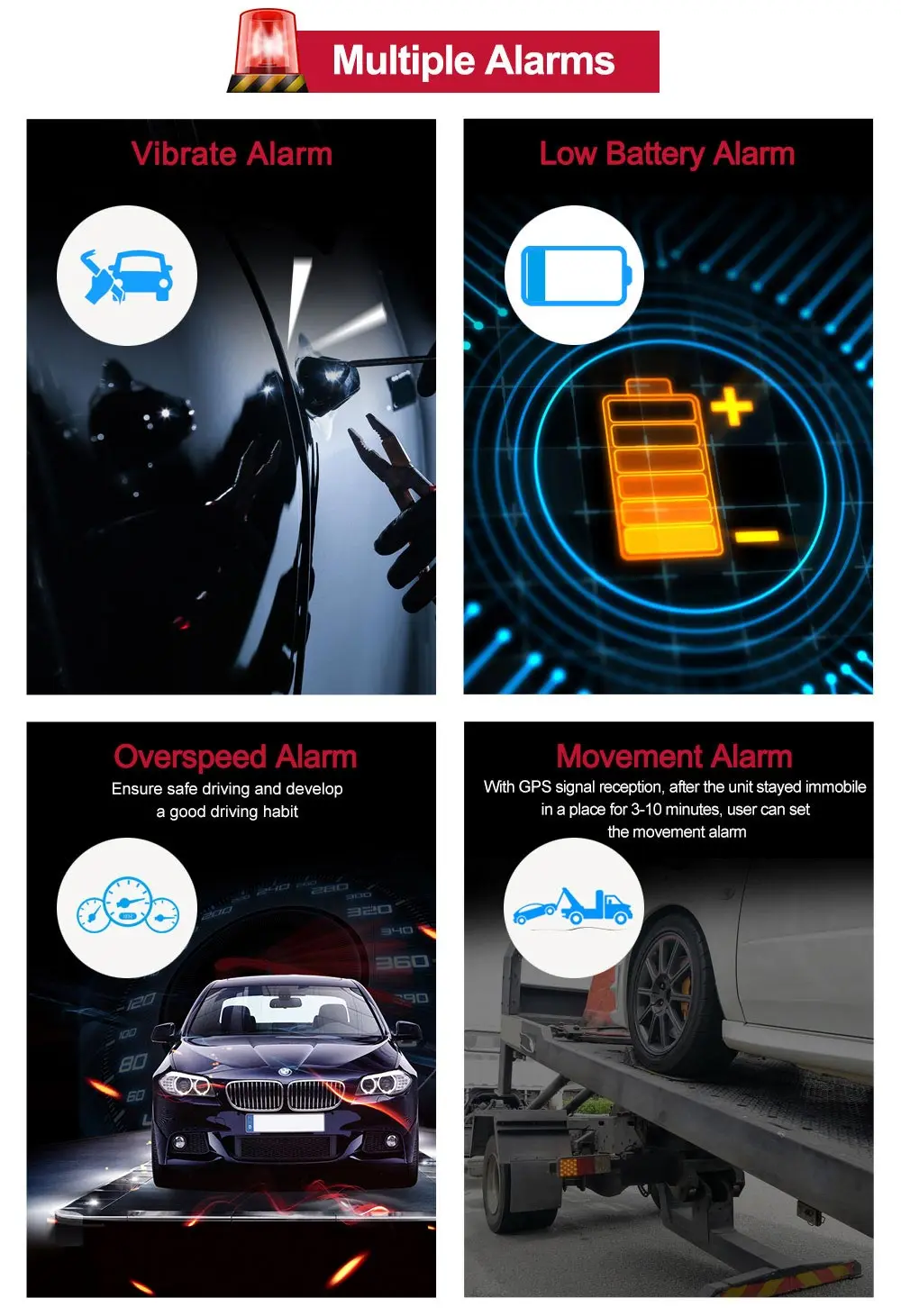 1. GPS + LBS + WIFI три способа позиционирования: если gps-сигнал хороший, устройство будет размещаться через gps-спутник, если нет, устройство будет обнаружено через LBS! При режиме определения местоположения GPS Точность составляет 5-10 метров, при режиме определения местоположения LBS Точность составляет 100-2000 метров, при режиме определения местоположения WIFI точность 0-50 метров. 2. Отслеживание в реальном времени: вы можете отслеживать устройство в реальном времени на картах google через мобильный телефон, планшет и компьютер, и интервал загрузки данных minumum составляет 10 секунд! 3. Воспроизведение маршрута истории: приложение и веб-сервер могут записывать данные загрузки устройства до 6 месяцев, вы можете воспроизводить маршрут истории в любое время! 4. Длительная продолжительность работы в режиме ожидания: он имеет встроенный 3,7 V 6000 мА/ч, литий-ионный аккумулятор, время работы в режиме ожидания: до 100 дней, а время работы составляет до 9-13 дней; 5. Мощный магнитный: он имеет встроенные мощные магниты, может быть очень легко установлен. 6. Водонепроницаемый IP67: водонепроницаемый уровень этого устройства IP67, он может противостоять брызгам воды, но не может быть помещен под воду! 7. Сверхскоростная Сигнализация: Эта сигнализация работает только в режиме непрерывного позиционирования. Когда скорость устройства превышает ту скорость, которую вы указали, она отправит сообщение «Будильник скорости!» К номеру admin каждые 5 минут. 8. Ударная Сигнализация: после того, как вы сделали сигнал тревоги, пожалуйста, держите трекер неподвижным в течение 5 минут, тогда эта функция начнет работать. Он отправит SMS «датчик тревоги!» на номер admin, когда устройство будет в шоке. 9. Будильник Движения: когда устройства остаются неподвижными в месте в течение 10 минут, пользователь может настроить будильник движения с помощью этой команды «move + passord», затем в чехол устройство переместило 500 м он отправит сигнал тревоги SMS «сигнализация, отслеживающая движение + широта и долгота» на авторизованный номер. 10. Гео-забор: Настройте геофенс для отслеживания для ограничения его движений в пределах района. Устройство отправит информацию о тревоге в приложение и веб-сервер, когда он выходит из этого района или попадает в него. 11. Режим сна для экономии заряда батареи: * Режим сна в зависимости от времени: после этого трекер будет работать только в течение 5 минут после пробуждения и возврата в режим сна, GPS отключится, и GSM будет работать в режиме низкого потребления. SMS, звонок может разбудить трекер. * Режим сна с помощью датчика удара: после этого настройки, если нет шока в течение 5 минут, трекер будет работать под режимом «Сон шоком», GPS отключится, GSM будет работать при низком потреблении. Вибрация, SMS, звонок может разбудить трекер. 12. Аварийный сигнал: на задней стороне устройства имеется индукционный датчик против удаления. Если этот скрытый индукционный датчик не будет закрыт снова, устройство отправит «сигналы тревоги от потери!» на номер admin и номер SOS по SMS! 13. Веб-платформа отслеживания и мобильное приложение: срок службы бесплатно! Доступны веб-сервер и Приложение iOS и Android версии!
