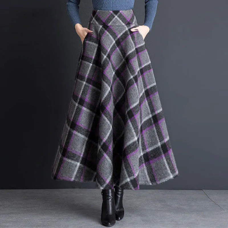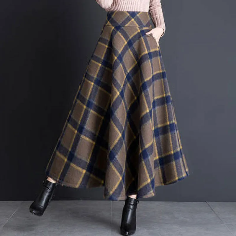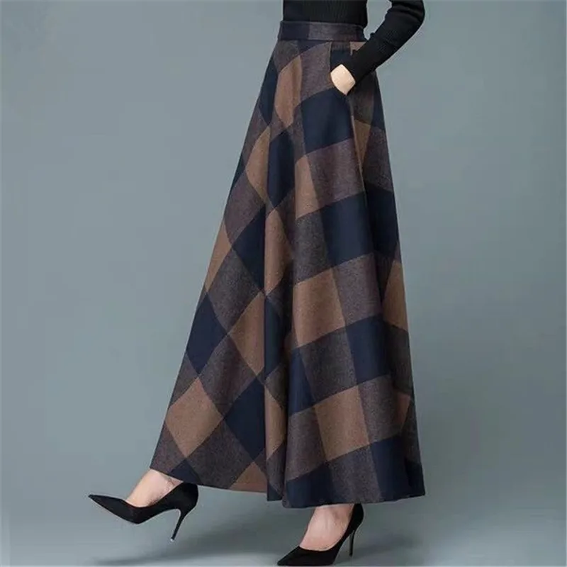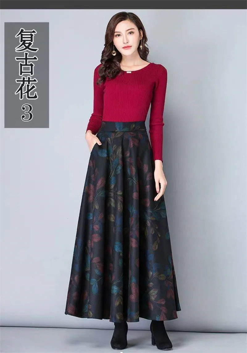 Зимняя шерстяная юбка-макси, Женская винтажная юбка трапециевидной ...