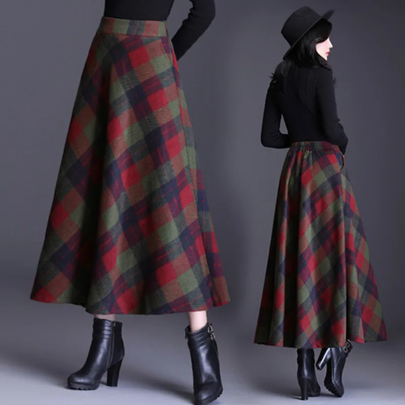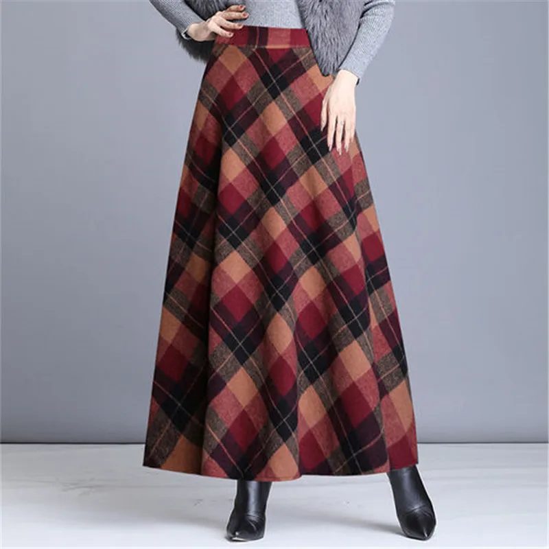 Женская шерстяная юбка, Повседневная винтажная длинная юбка-макси с высокой талией, для офиса, для весны и зимы, 2019