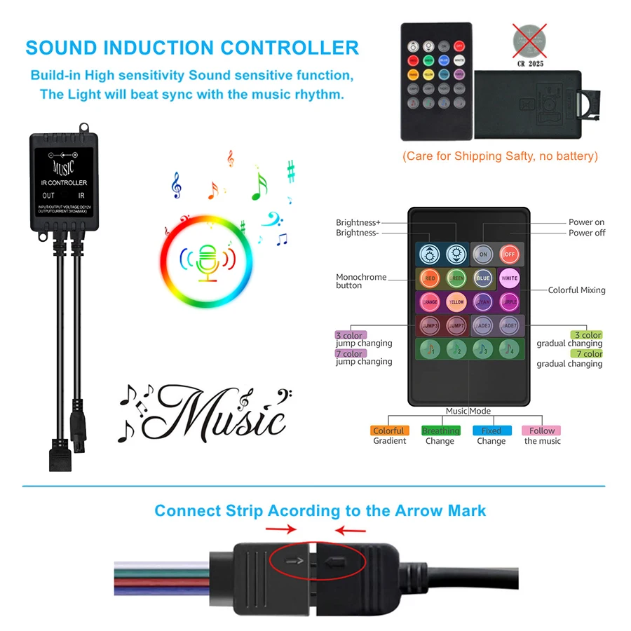 Работает хорошо, сигнал иногда слабый, мне нужно идти ближе к светодиоду, чтобы включить его. Мне не очень нравятся опции звукового датчика, скорость слишком быстрая и не имеет более медленного варианта
