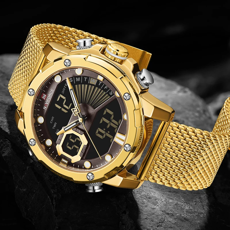 2020NAVIFORCE мужские часы лучший бренд класса люкс Хронограф Золотые Кварцевые водонепроницаемые мужские часы светодиодные цифровые аналоговые Мужские часы Reloj Hom