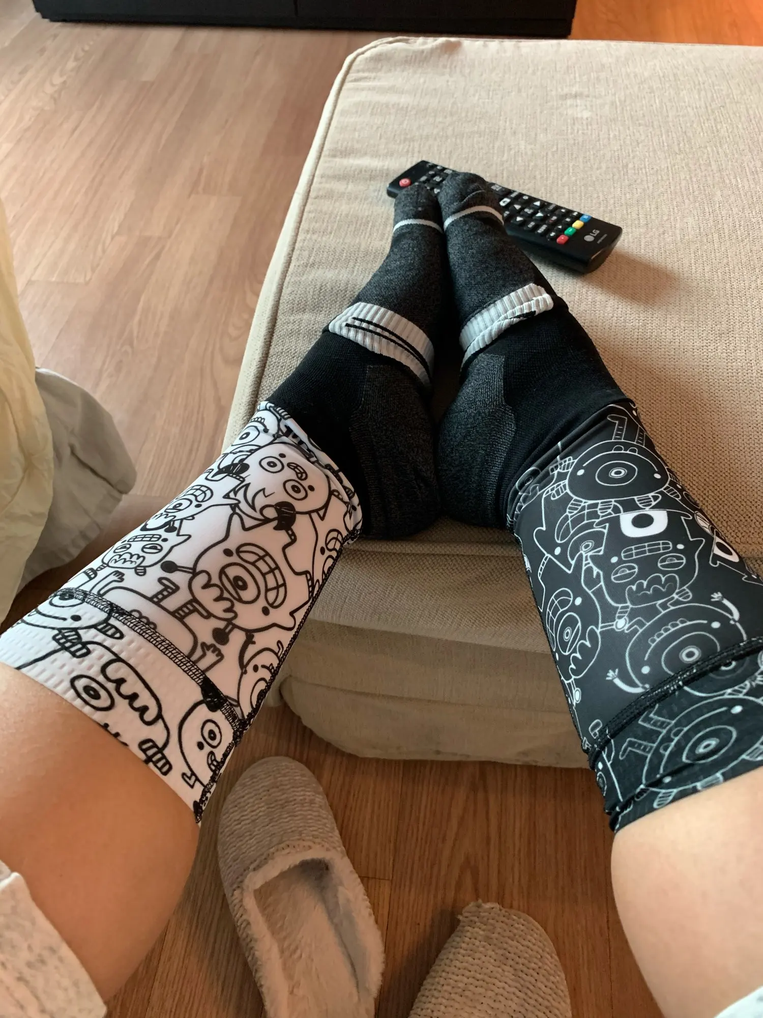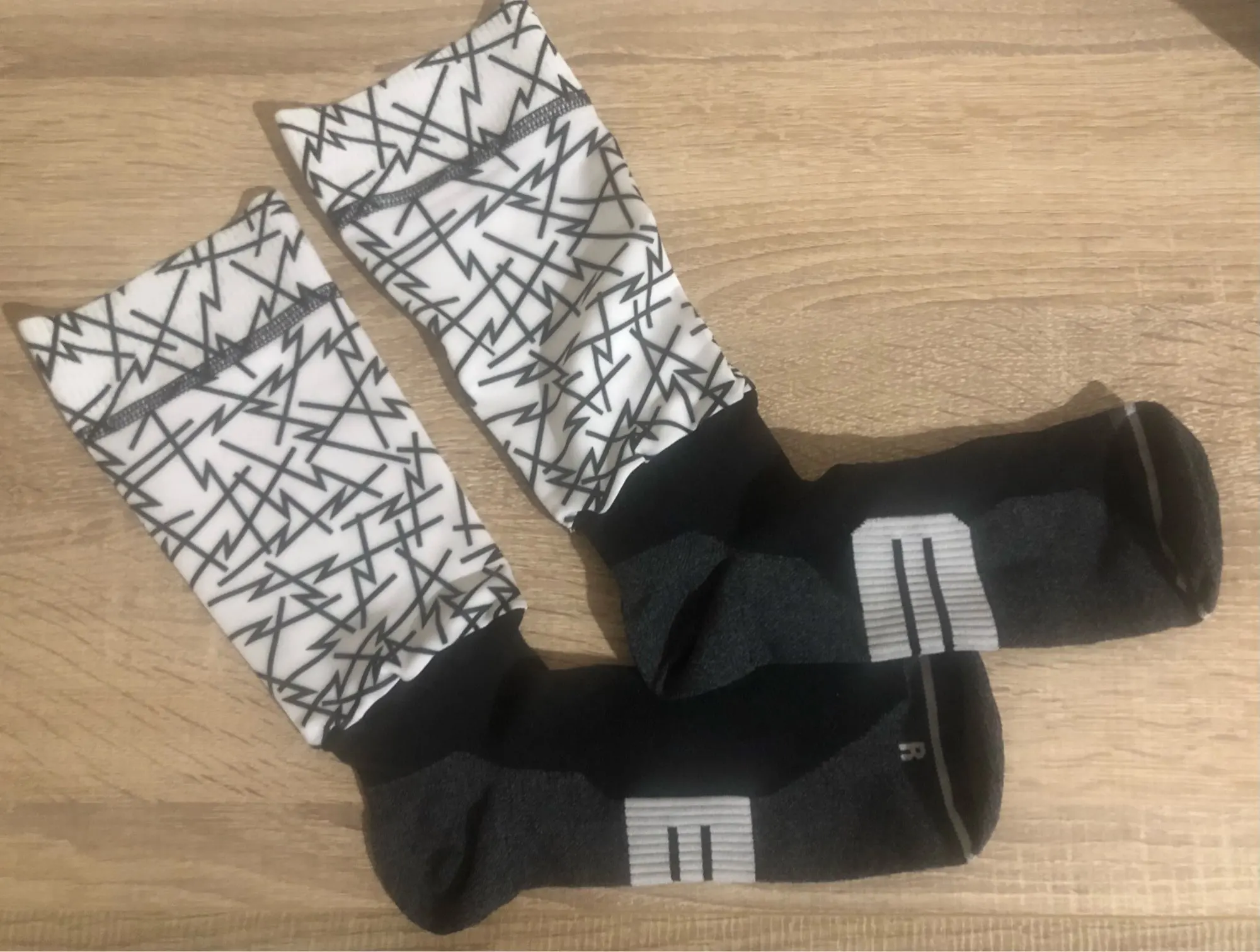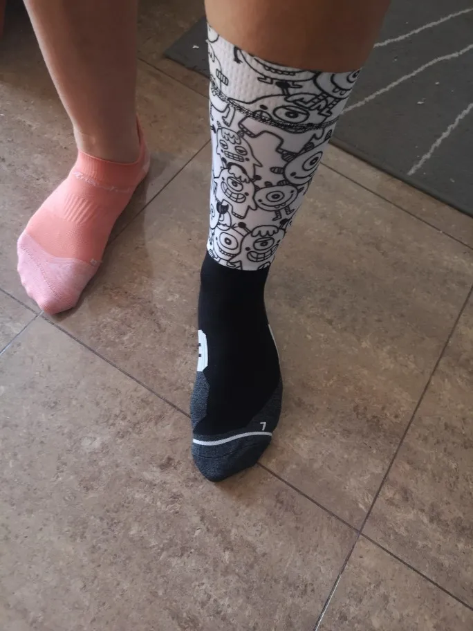 Даже ботильоны выглядят как спортивные ботинки. Затем Прикрепите остальные детали из материала рукавов или некоторых компрессионных футболок, а пояс не скользит. Это необычно, но я думаю, что это практично. Если у вас очень большая или двойная нога, они вас не оставят. Фото размер 38 (дополнительная пятка) и большие запонки (плотно, но не неудобно)