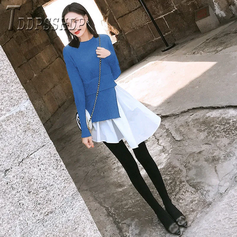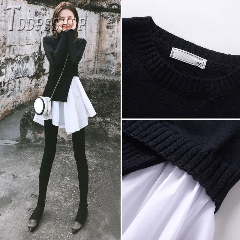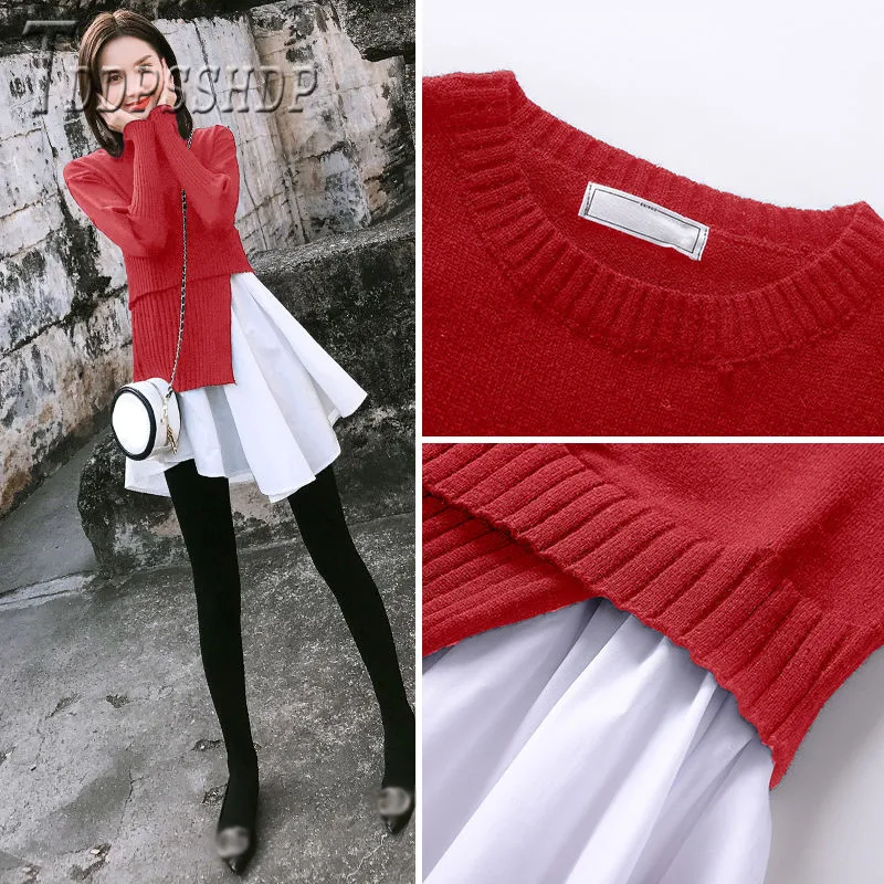 Женский свитер с имитацией двух частей, в стиле пэчворк, корейский пуловер, 2019