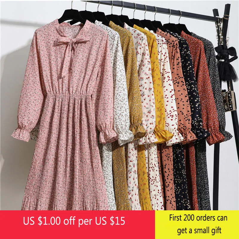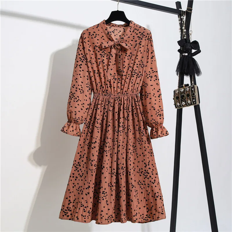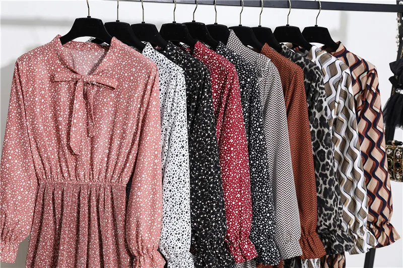 Женское шифоновое платье-рубашка средней длины, с длинным рукавом и цветочным принтом