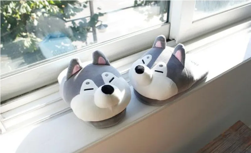 Шиба ину и корги мягкие животные для мужчин и женщин, пара зимних теплых туфель из хлопка с собачкой хаски, плюшевые игрушки, милый подарок на Рождество для девочек